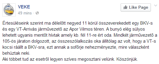 A BKV-nál eddig két nap alatt volt két összetört villamos, most meg két összeverekedő buszsofőr. (via)