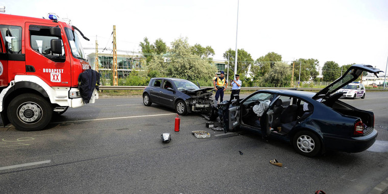Két autó ütközött a Helsinki úton (Soroksári út, 51-es főűt) hétfőn délután, és így állapodtak meg. Többen megsérültek. (MTI)
