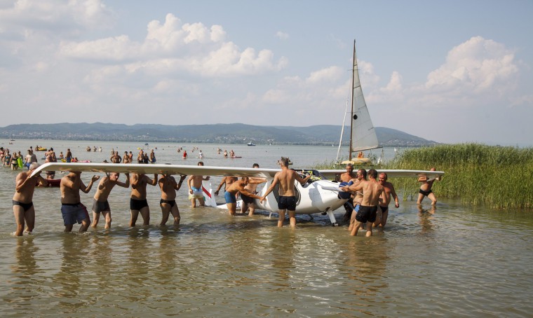 A Balatonberény melletti nudista strandhoz közel esett a Balatonba a vitorlázó repülő. A gép két utasa nem sérült meg, egy csapatnyi fürdőző férfi pedig simán kihozta a szerencsétlenül járt repülőt a tóból. (MTI)