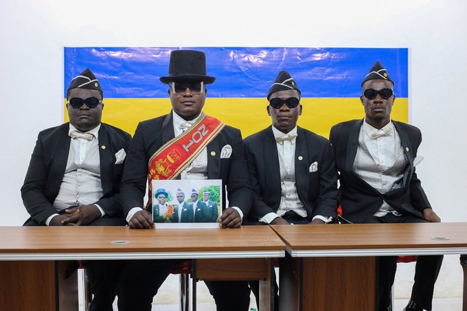 250 000 dollárt adományozott Ukrajnának Benjamin Aidoo, azaz @nanaotafrija ghánai mémgyászhuszár, temetkezési vállalkozó, az egész világon széjjelmémesedett „coffin dance” föltalálója és előadója. Aido NFT (non-fungible token, azaz a kriptovalutáknál használ blokklánc segítségével egyedivé tett) formájában bocsátotta árverésre az „eredeti” coffin dance videót, ebből húzott be viszonylag nagy összeget, és juttatott belőle az ukrán védelmi alapnak.
