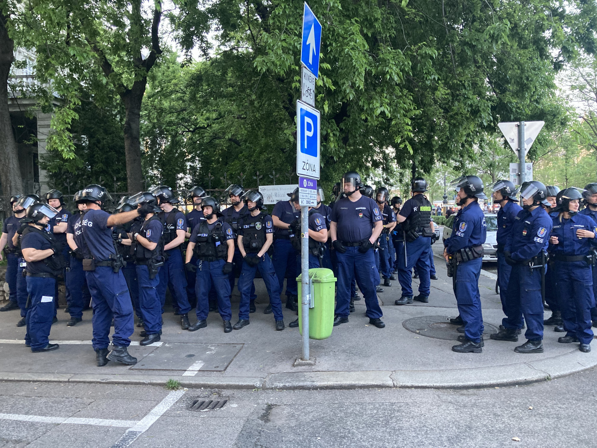 Az Andrássy út és a Rippl-Rónai utca sarkán is felállt egy rendőrosztag Fotó: Rényi Pál Dániel / 444 Molnár Kristóf 2023. május 19. 20:15 Megosztás Link másolása Facebook X (Twitter) Tumblr LinkedIn