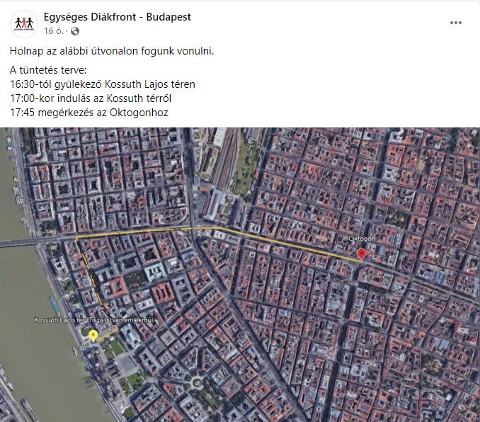 Fél 5-től gyülekeznek a Parlamentnél, ötkor indulnak az Oktogon felé, ahová háromnegyed 6-kor érkeznek.