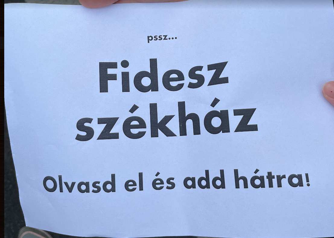 Körbejárnak a szórólapok: „psssz... Fidesz székház. Olvasd el és add hátra!” Ezek szerint a Lendvay utcában lesz a folytatás. Szurovecz Illés 2023. május 19. 18:37 Megosztás Link másolása Facebook X (Twitter) Tumblr LinkedIn
