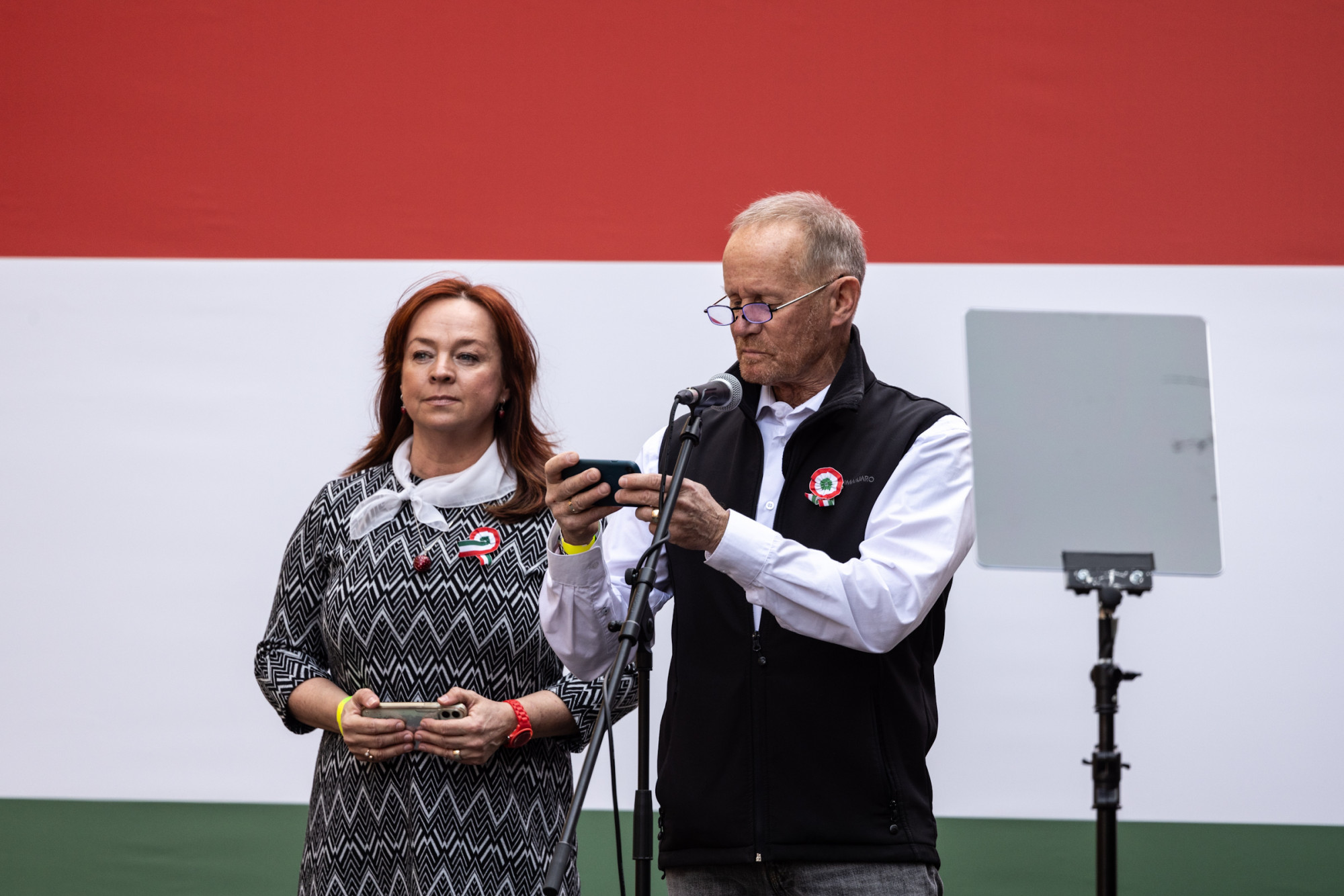 „Szevasztok, szabad magyarok!” – kezdte a színész házaspár a Magyar Péternek korábban küldött üzenetek felolvasását. Azt mondták, Magyar első, februári Facebook-bejegyzése után rengeteg támogató levelet kapott, ezekből olvastak fel párat.
