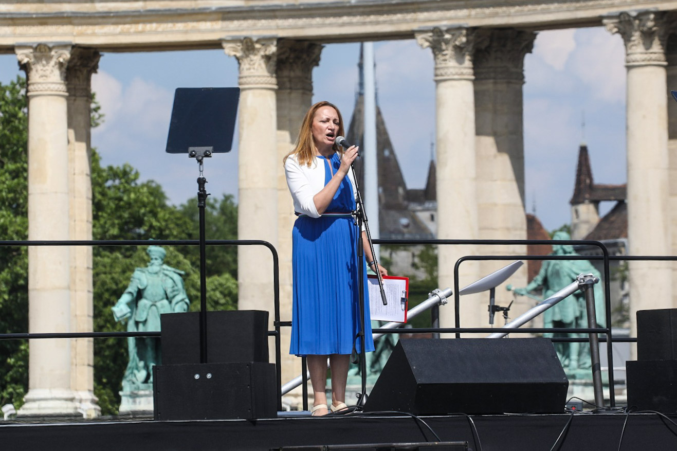 Bujdosó Andrea EP-képviselőjelölt a színpadon