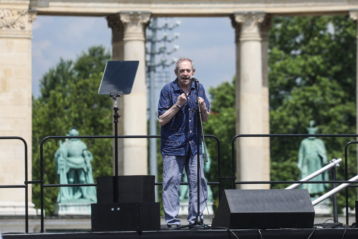 Jordán Tamás színművész azzal kezdte a beszédét, hogy 60 éve áll rendszeresen színpadon, de ekkora közönséggel még soha nem találkozott.