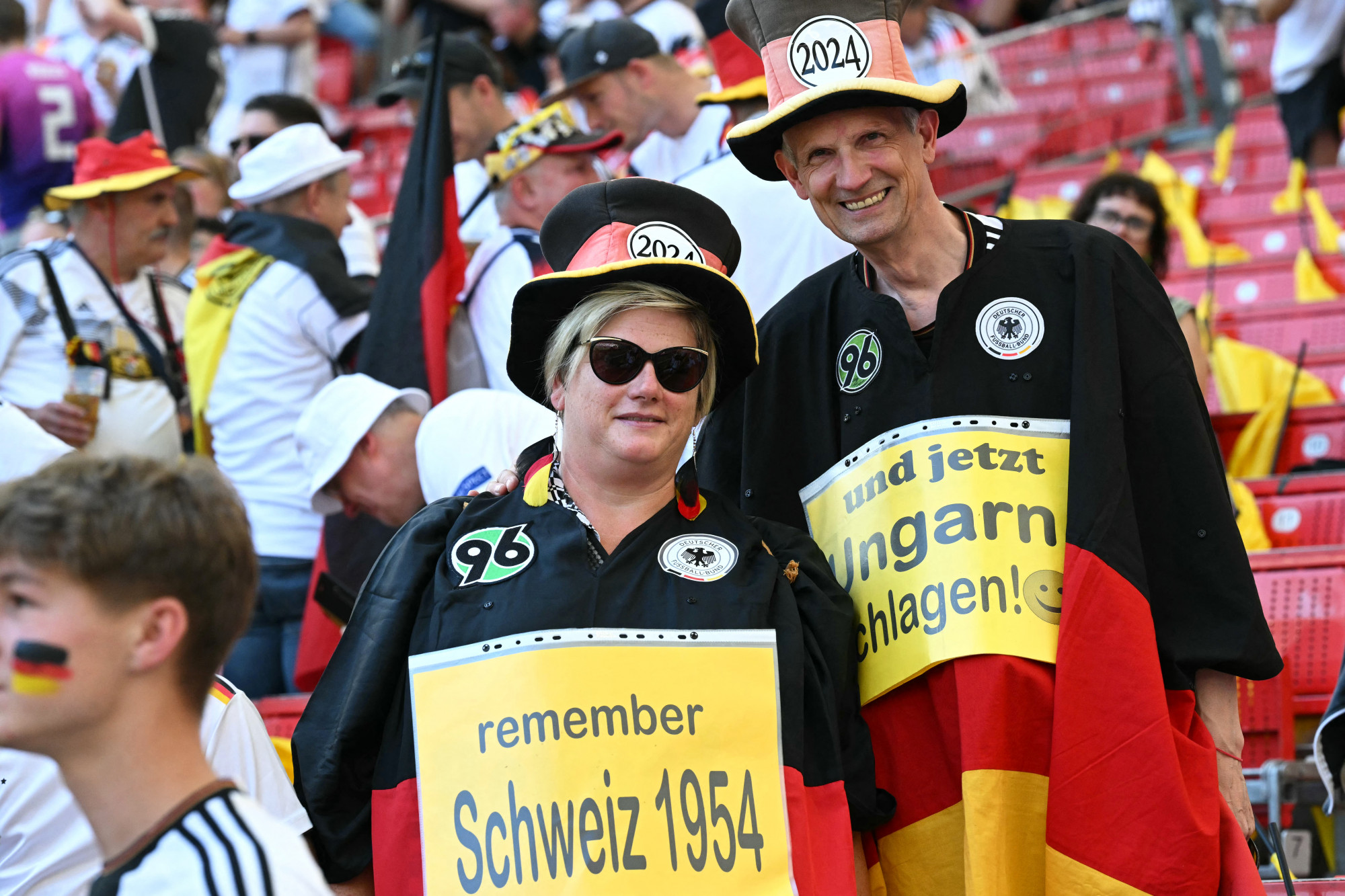 Nem egészen világos, hogy a stuttgarti stadionban lekapott párocska mit szeretne. Arra emlékezzünk az 1954-es vébéről, amikor a csoportmeccsen 8:3-ra rommá verték a németeket Puskásék, vagy amikor a döntőben a teljesen esélytelennek tartott kiscsapat 0:2-ről felállva legyőzte a favoritot?