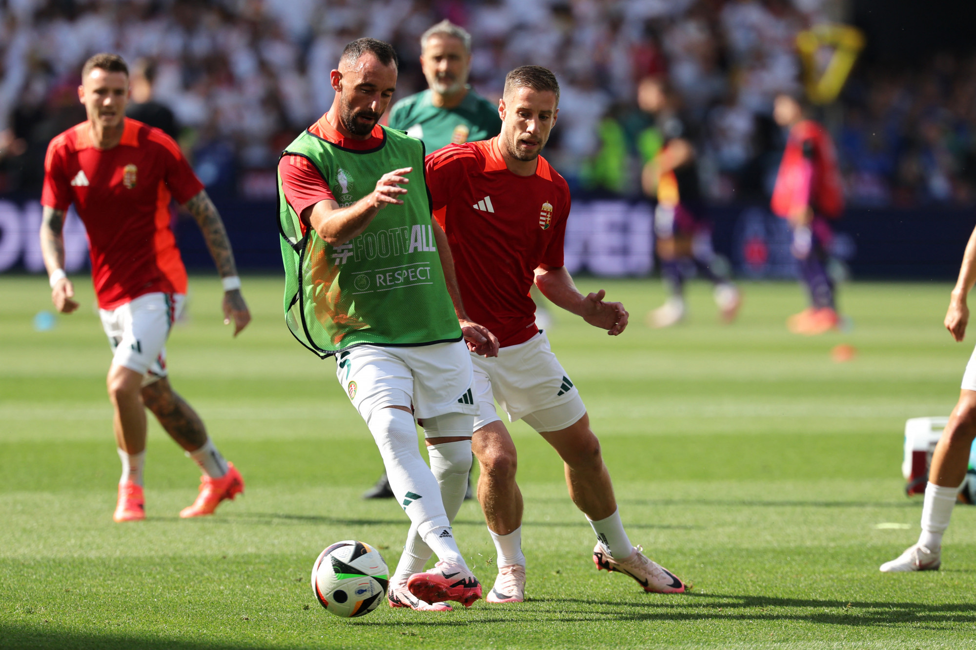 Füttyszó és taps kíséretében futott ki a pályára melegíteni a magyar válogatott a stuttgarti Mercedes-Benz Arénában. Kezdés 18 órakor.