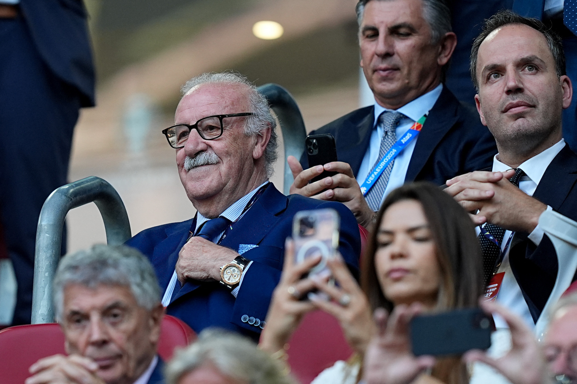 A meccsen ott van a világ– és Európa-bajnok korábbi spanyol kapitány, Vicente del Bosque is.