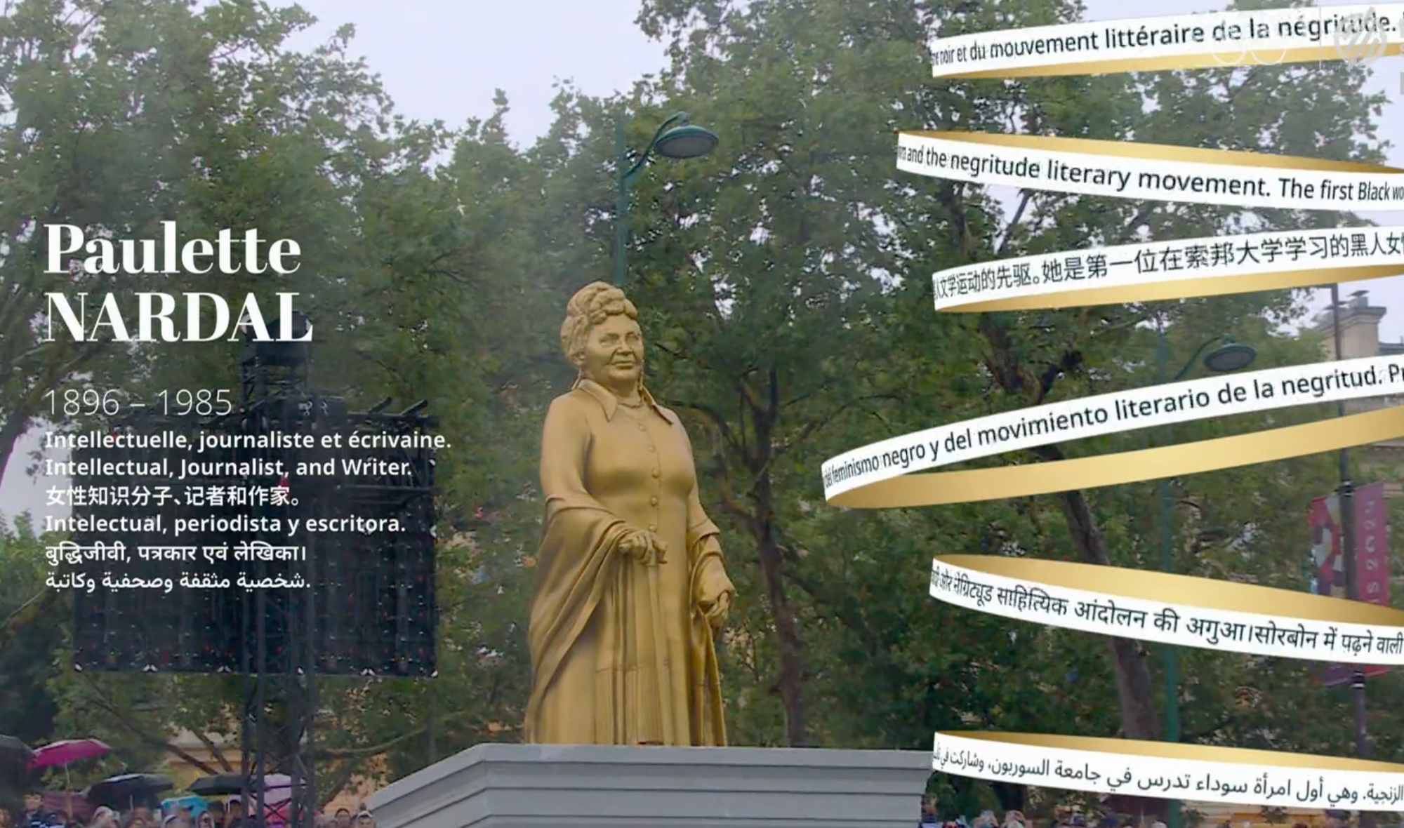 Tetőn állva Axelle Saint-Cirel mezzoszoprán operaénekes előadja a francia himnuszt, amit egy újabb téma követ: a nők egyenjogúsága. Aranyszobrokban bukkannak fel, mind olyanok, akik a nőkért tettek a francia történelem során. A szobrok ezután is maradni fognak Párizsban, hogy ezzel ellensúlyozzák a férfiakról készült szobrok uralkodó többségét.