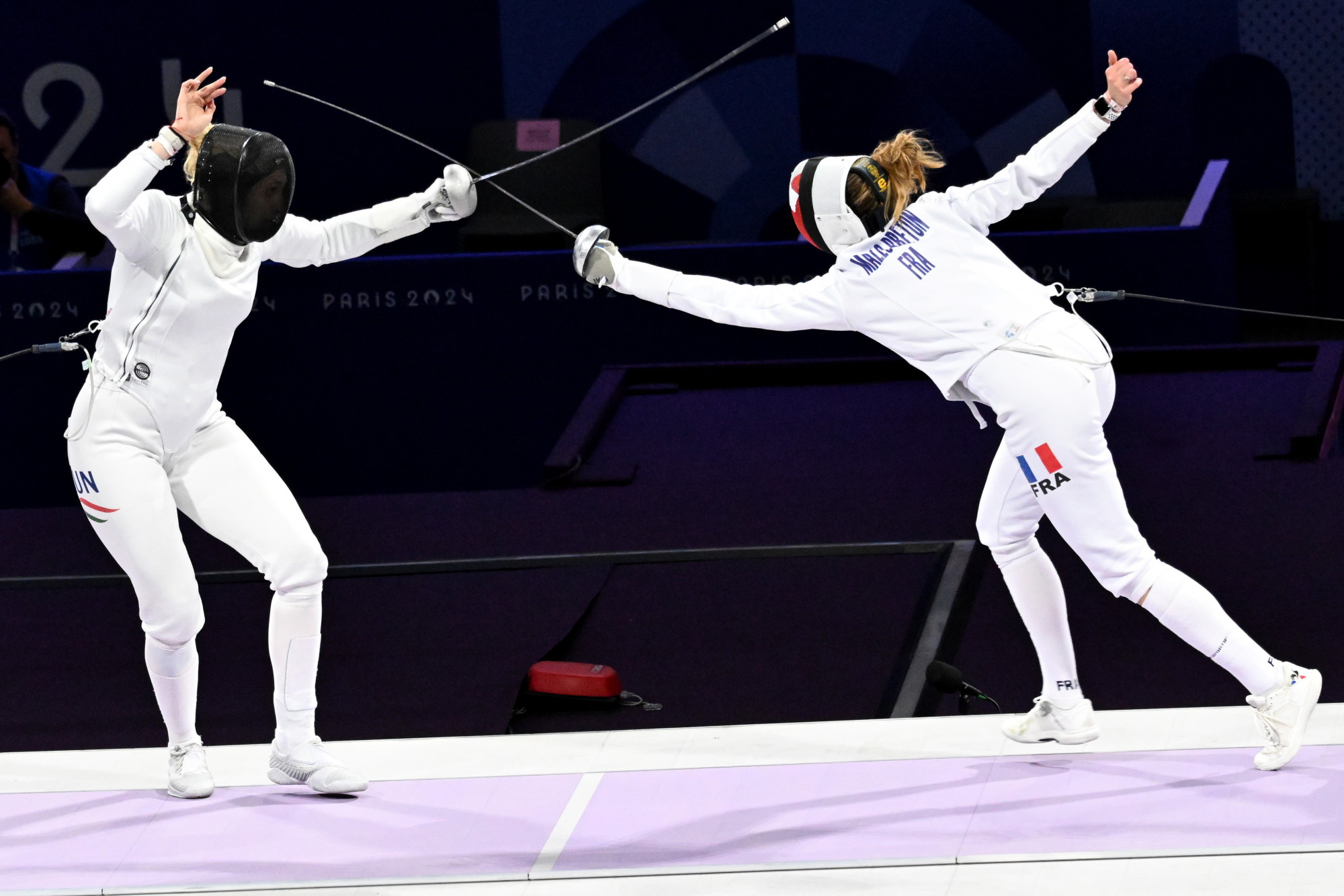 A magyar párbajtőröző a hazai közönség előtt szereplő Auriane Mallo-Bretonnal mérkőzik meg a döntőért, a hangulat elképesztő.