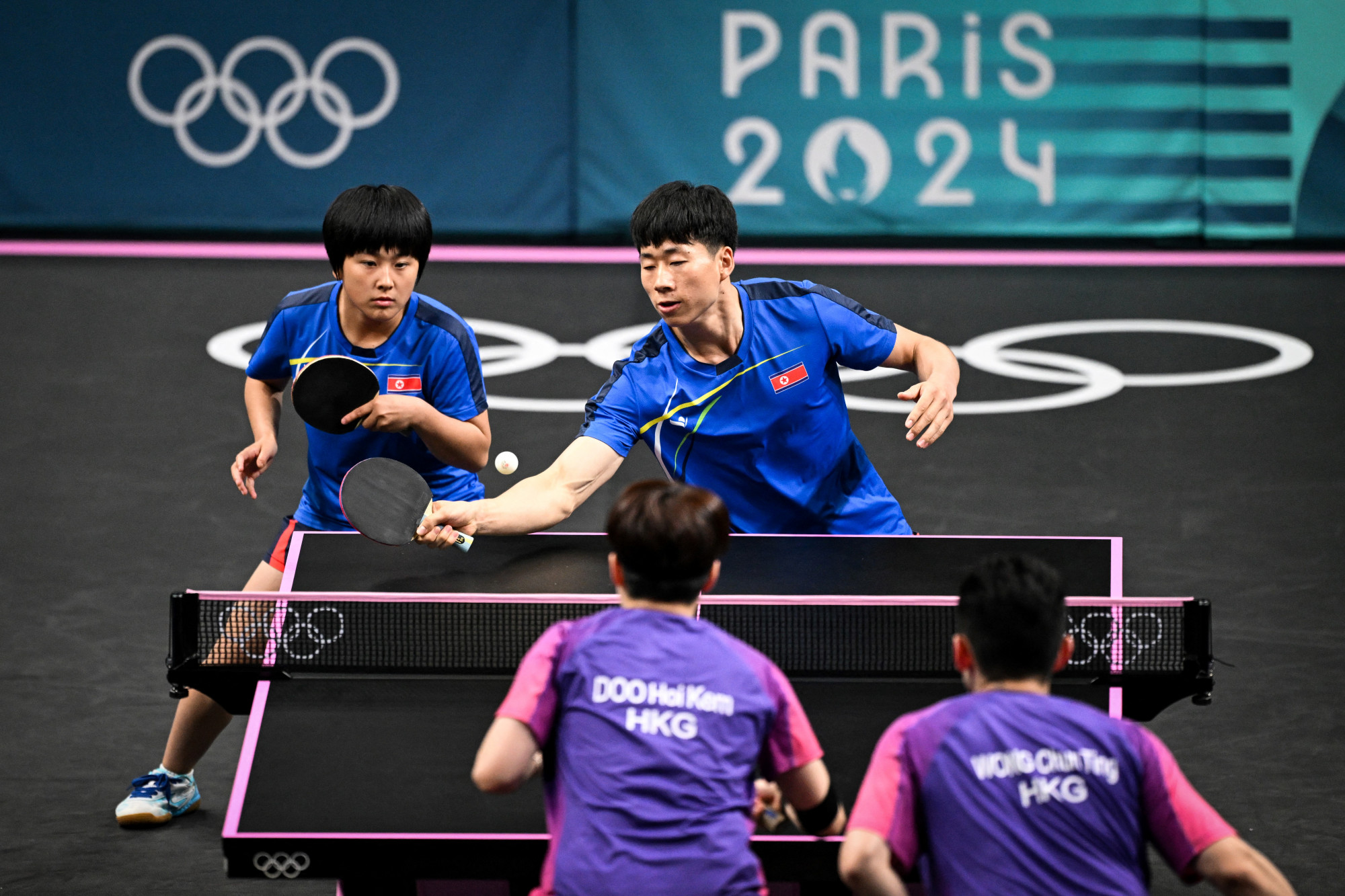 Az észak-koreai Ri Jong Sik és Kim Kum Yong elkezdte az asztalitenisz-torna vegyespáros döntőjét a kínaiak ellen. Az első szettet elveszítették.
