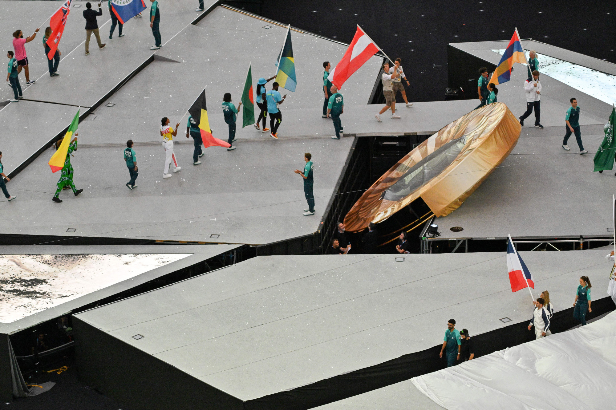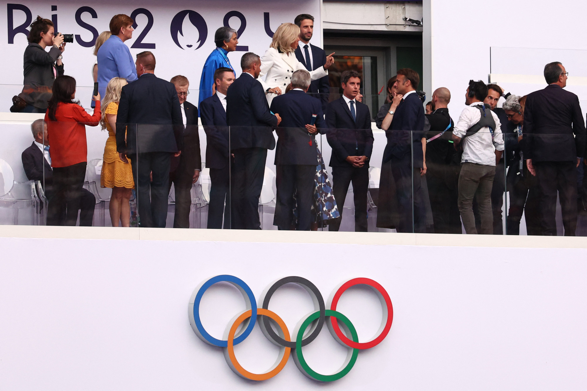 Köszöntötték Thomas Bachot, a Nemzetközi Olimpiai Bizottság elnökét és Emmanuel Macront, Franciaország köztársasági elnökét, majd a szimfonikus zenekar eljátszotta a francia himnuszt.