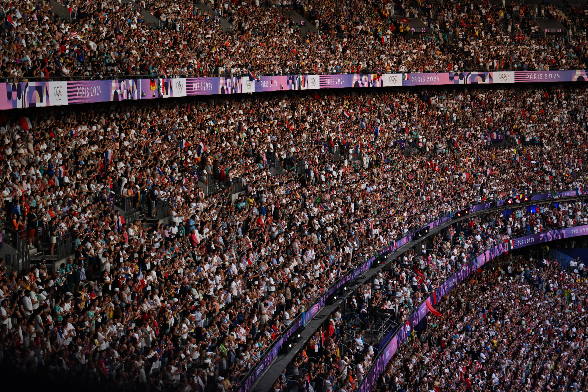 Miután minden zászló a helyére került, a többi, Párizsban maradt sportoló is bejöhetett a stadionba.