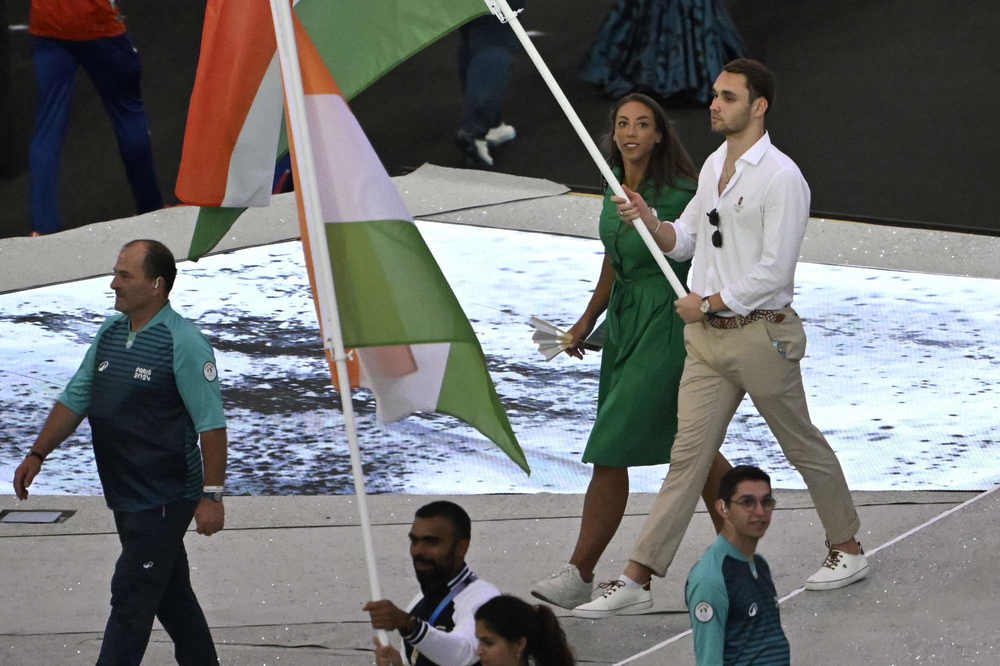 Az olimpia láng 16 napig volt a Tuileriák kertjében, most Leon Marchand, a franciák négyszeres győztes úszója, az olimpia egyik legnagyobb sztárja indult meg vele a Stade de France felé.