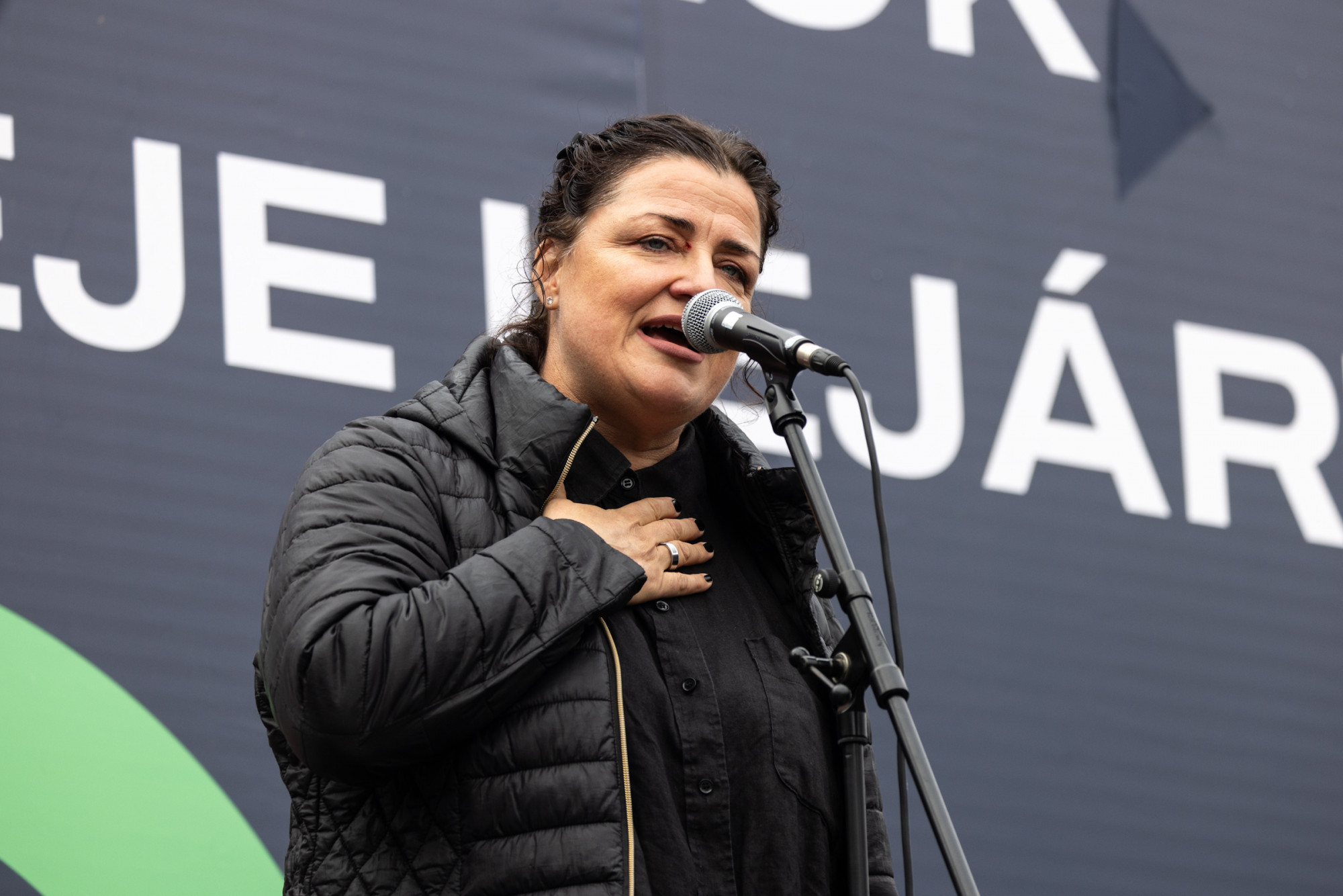 Péter Petra, a tiszás rendezvények állandó műsorvezetője szólítja színpadra a kutyapártos humoristát, Brutit Aki egyszer már bejutott a köztévébe egy választási műsorban. Fotó: Németh Dániel/444 Haszán Zoltán 2024. október 5. 15:16 Megosztás Link másolása Facebook X (Twitter) Tumblr LinkedIn