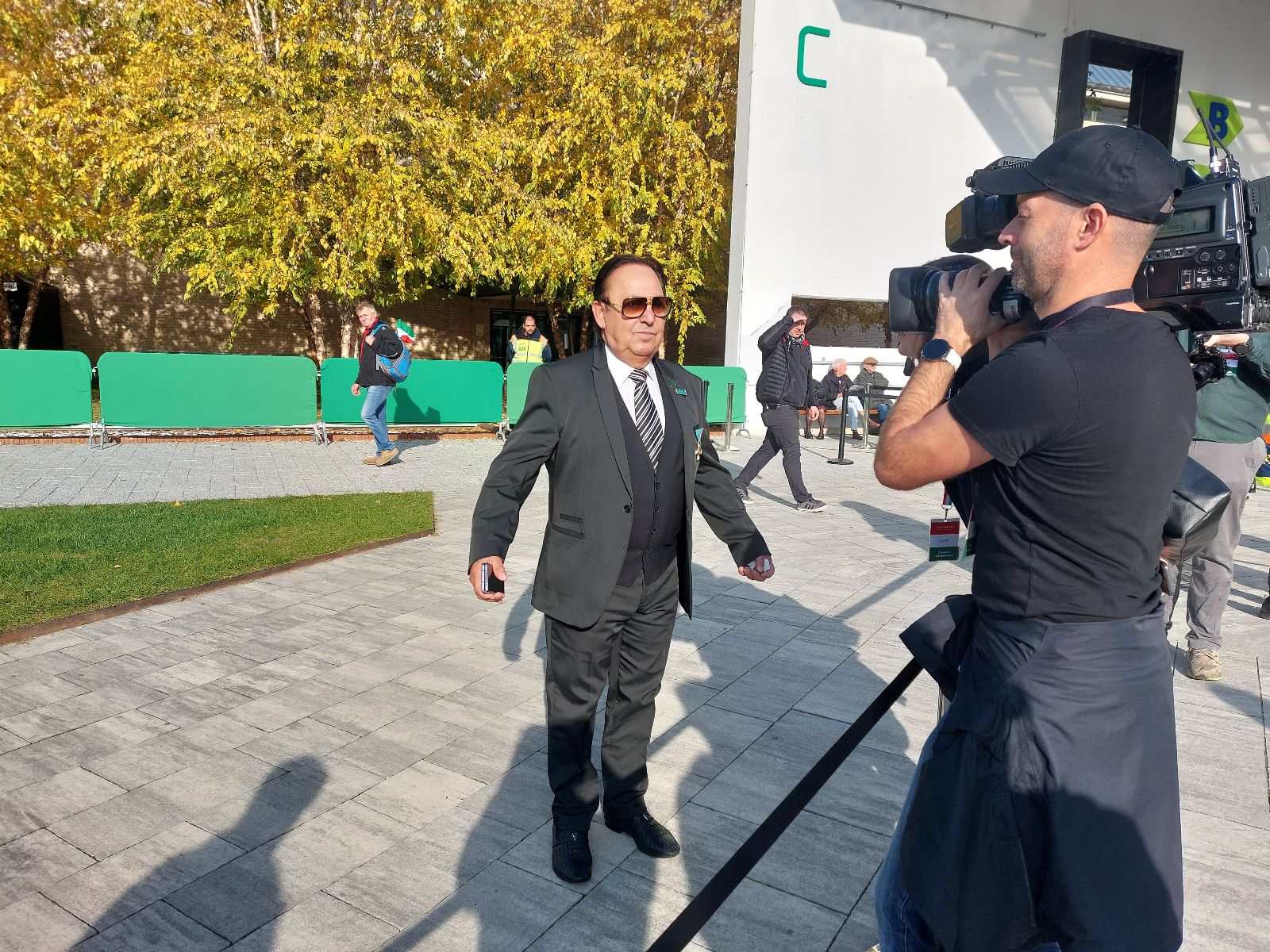 Éppen elsétált az újságírók mellett. Amikor megkérdeztük tőle, hogy mit szól a kordon mögé zárt sajtómunkatársakhoz, azt válaszolta, hogy süt a nap, boldogság van.