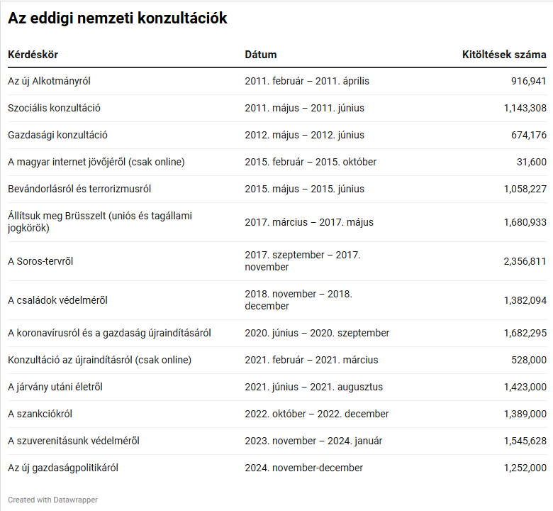 A nemzeti konzultációról a miniszterelnök azt mondta, hogy ez volt a harmadik leginkább érdeklődést kiváltó kérdéssor, 1 252 000-en töltötték ki.