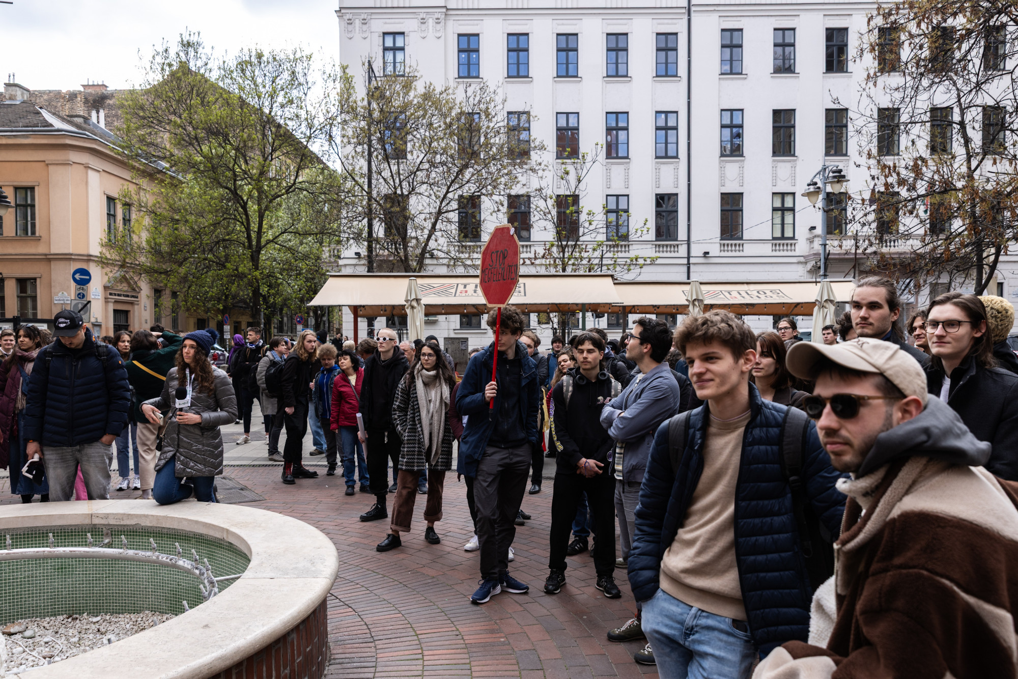 – mondta Imre Marcell, aki szintén szervezője az eseménynek. „Hallgatunk?” – kérdezte. „Nem” – kiabálta a tudósítónk szerint 150-200 fős tömeg. Azt mondta, fogalmuk sincs, mit jelent majd a gyülekezési jog korlátozása a gyakorlatban. A magyar egyetemi polgárságnak akarnak ezzel üzenni, mert hisznek az egyetemisták szolidaritásában. Szerinte társadalmi és hallgatói összefogás is kell, az eseménnyel precedenst és platformot akartak teremteni az egyetemistáknak, hogy megszervezhessék magukat.