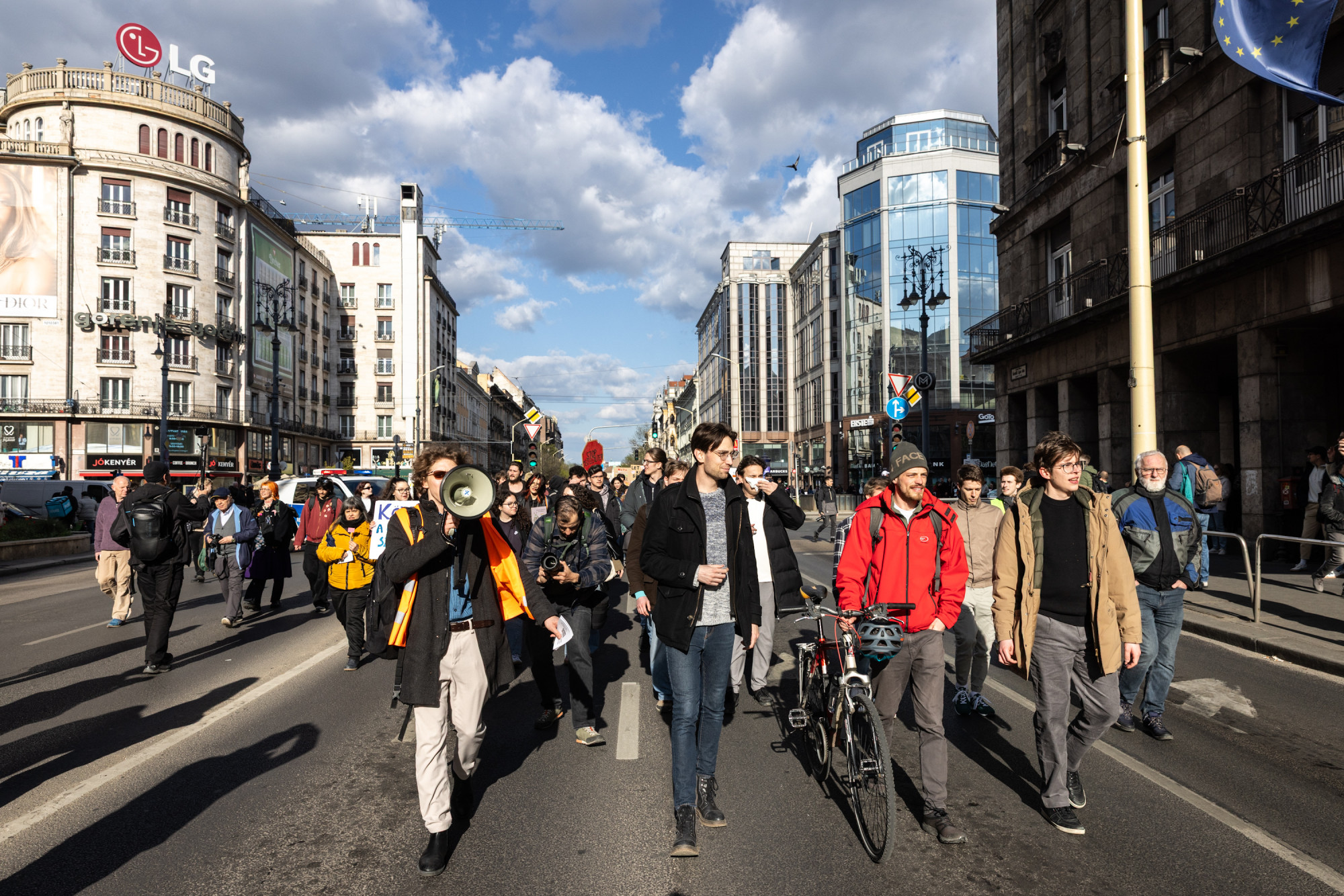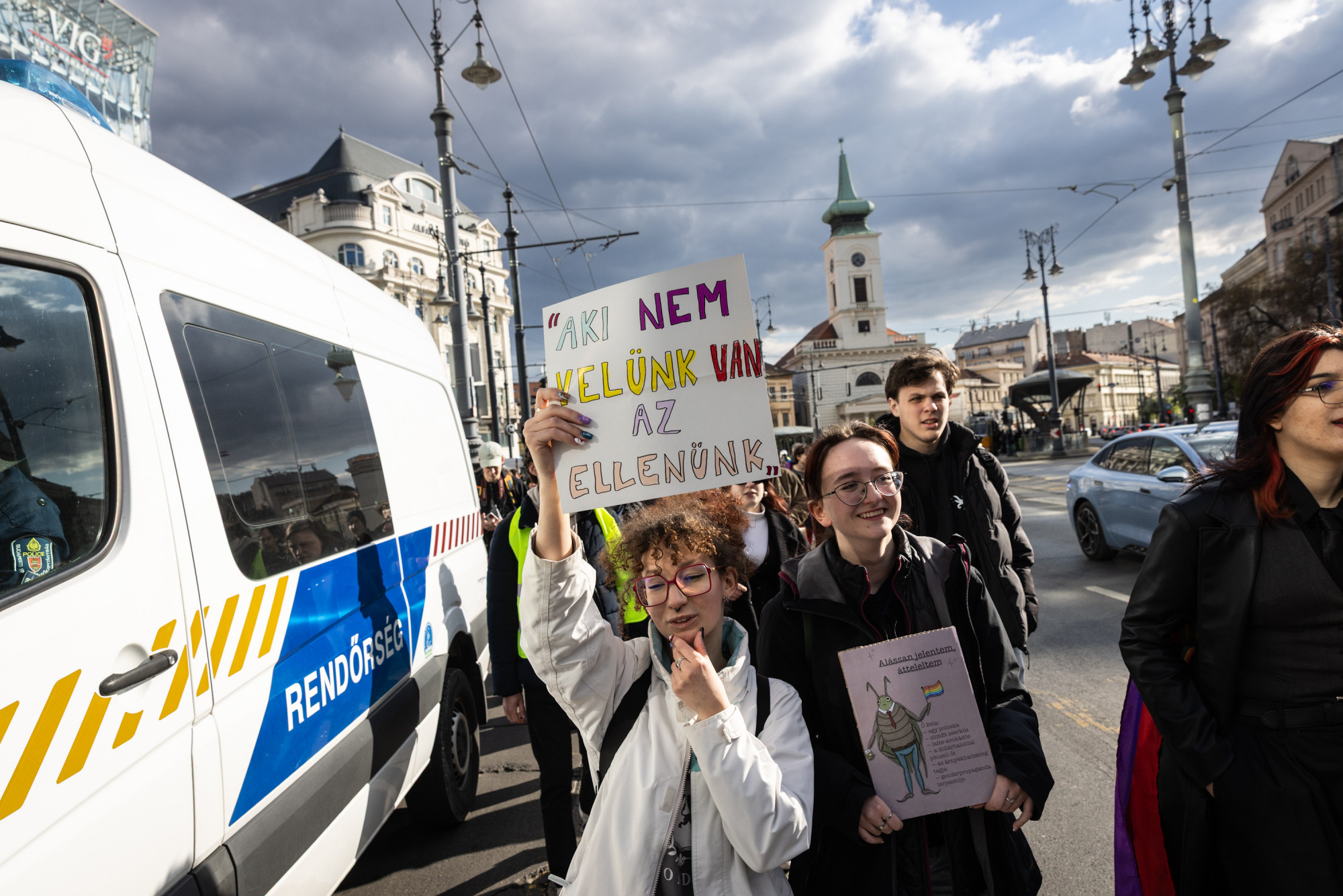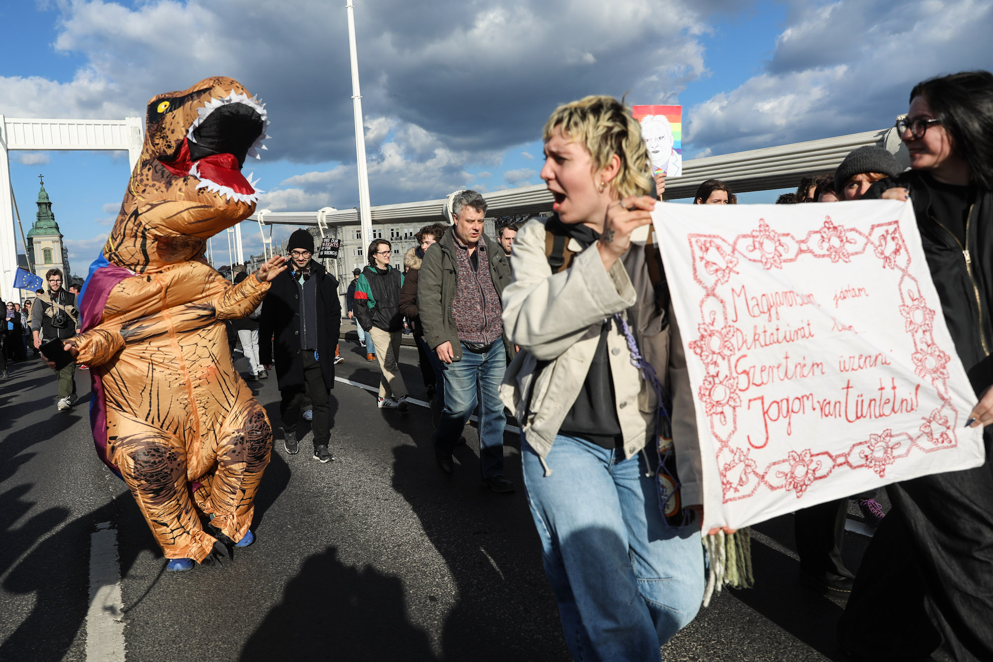 „De ez a mi terünk, a mi utcáink, a mi hidaink. Érezzétek otthon magatokat itt is. Kéz a kézben folytatjuk a küzdelmet, a kampuszainkon is. Vegyük vissza a jövőnket” – zárta a beszédét.