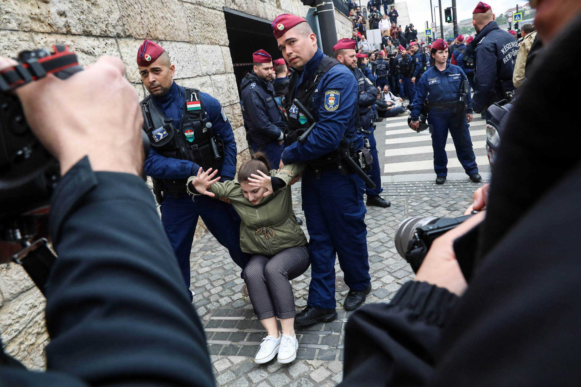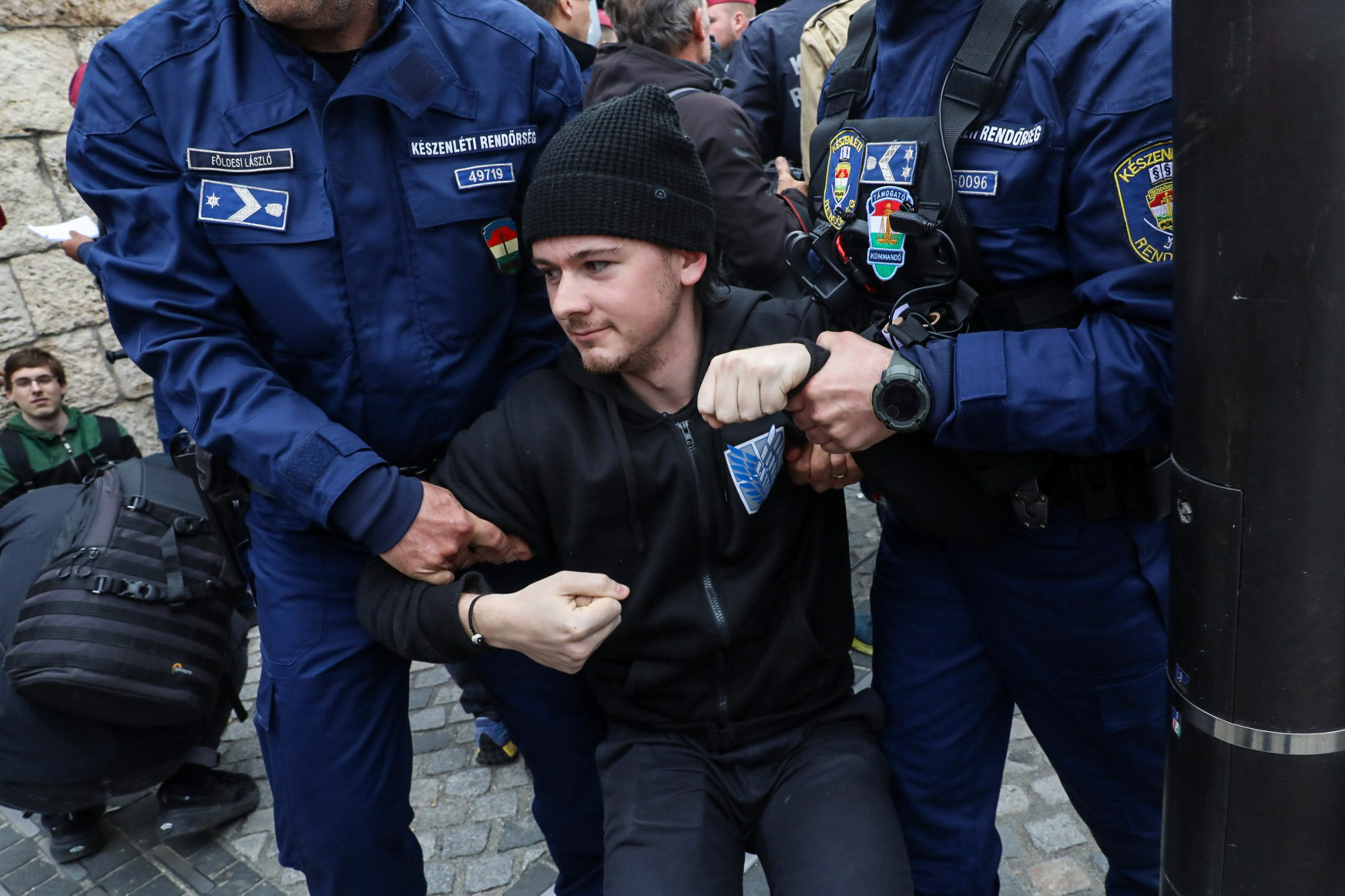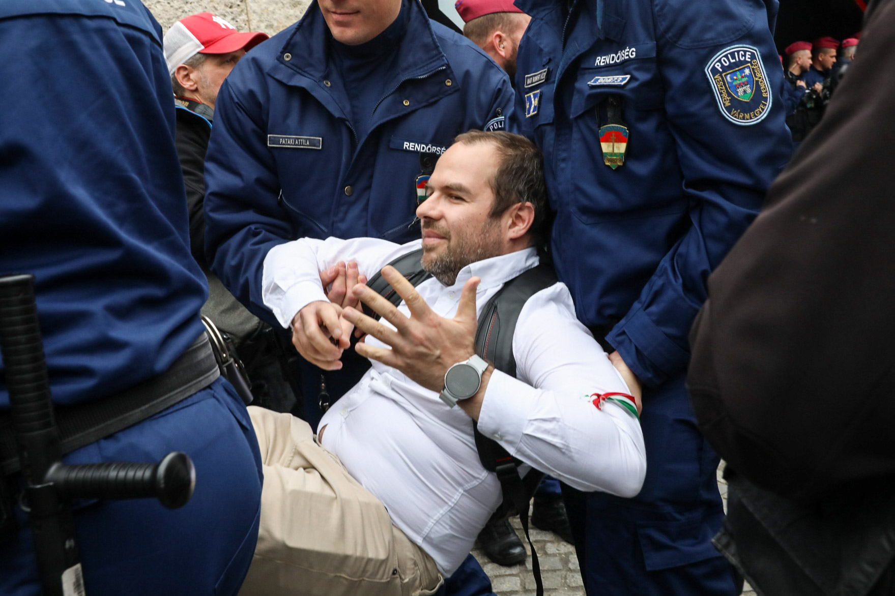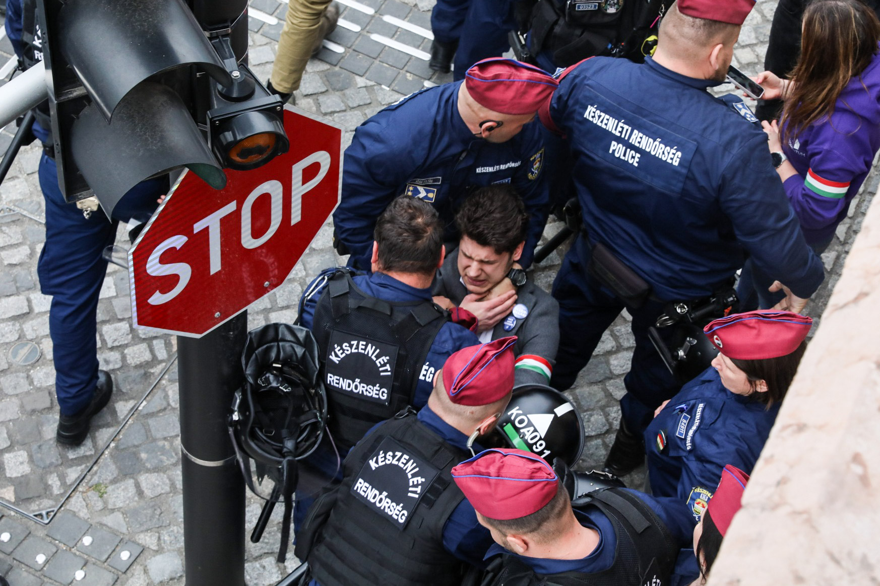 Közben néhány diák a rendőröknek azt üvöltözi, hogy "mocskos fidesz".