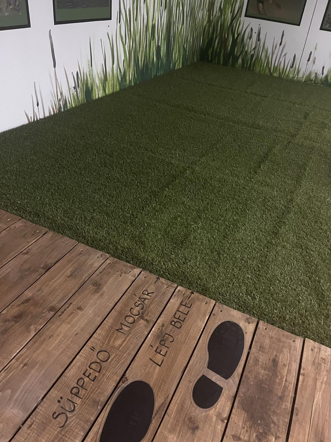 egy műanyag béka, egy falon „két darab aszott halfej-preparátum”, egy nádasszimulátor, ami arról szól, hogy lógó színes kreppapírok között kell átmenni, mocsárszimulátor, amit padlószőnyeg alá tett szivaccsal valósítottak meg,