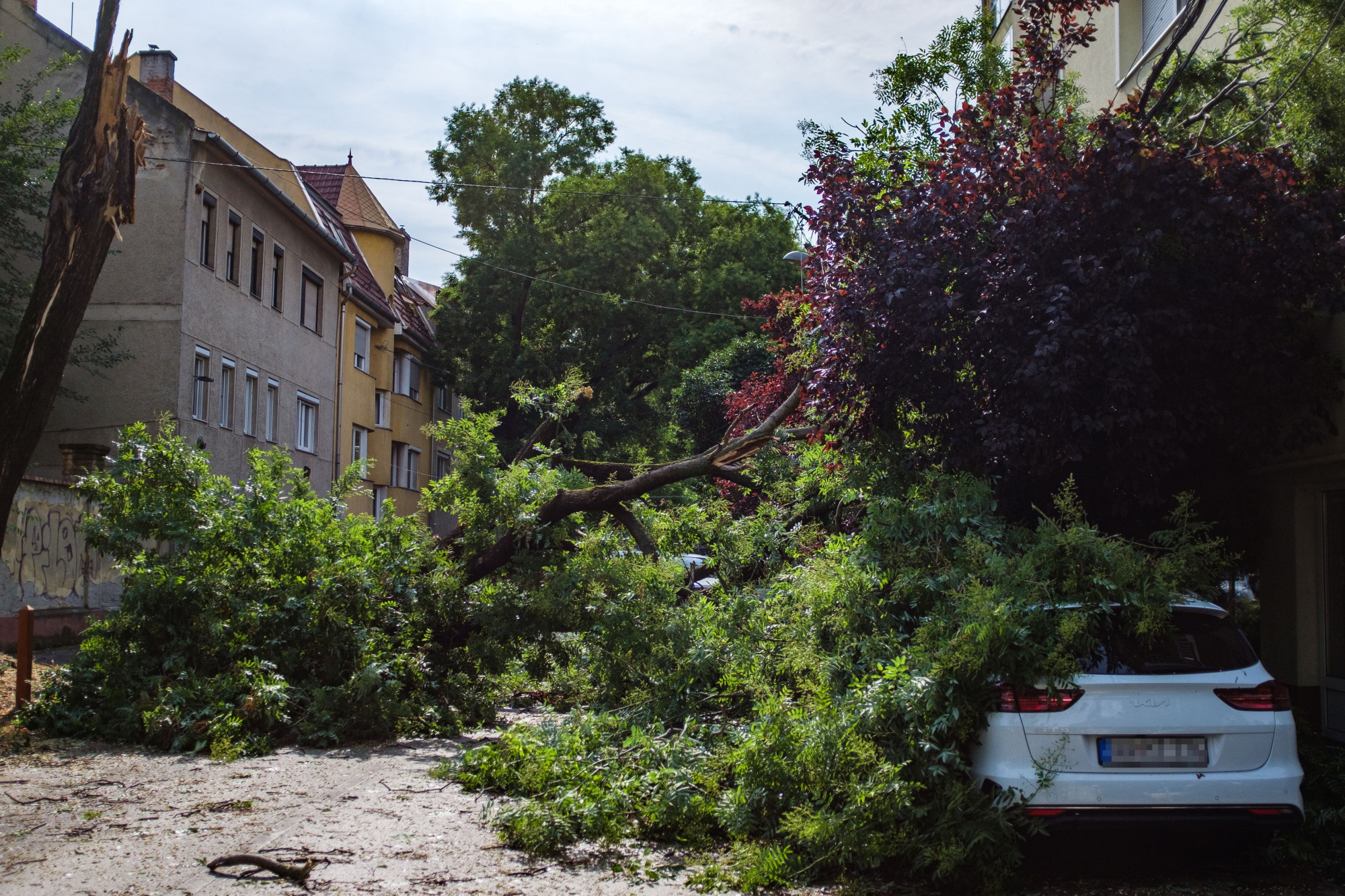 A Tiszaújvárosi Krónika szerint a Borsod-Abaúj-Zemplén megyei városban is zajlik a kármentés. Egy kidőlt fa a belváros egyik járdáját zárta el.