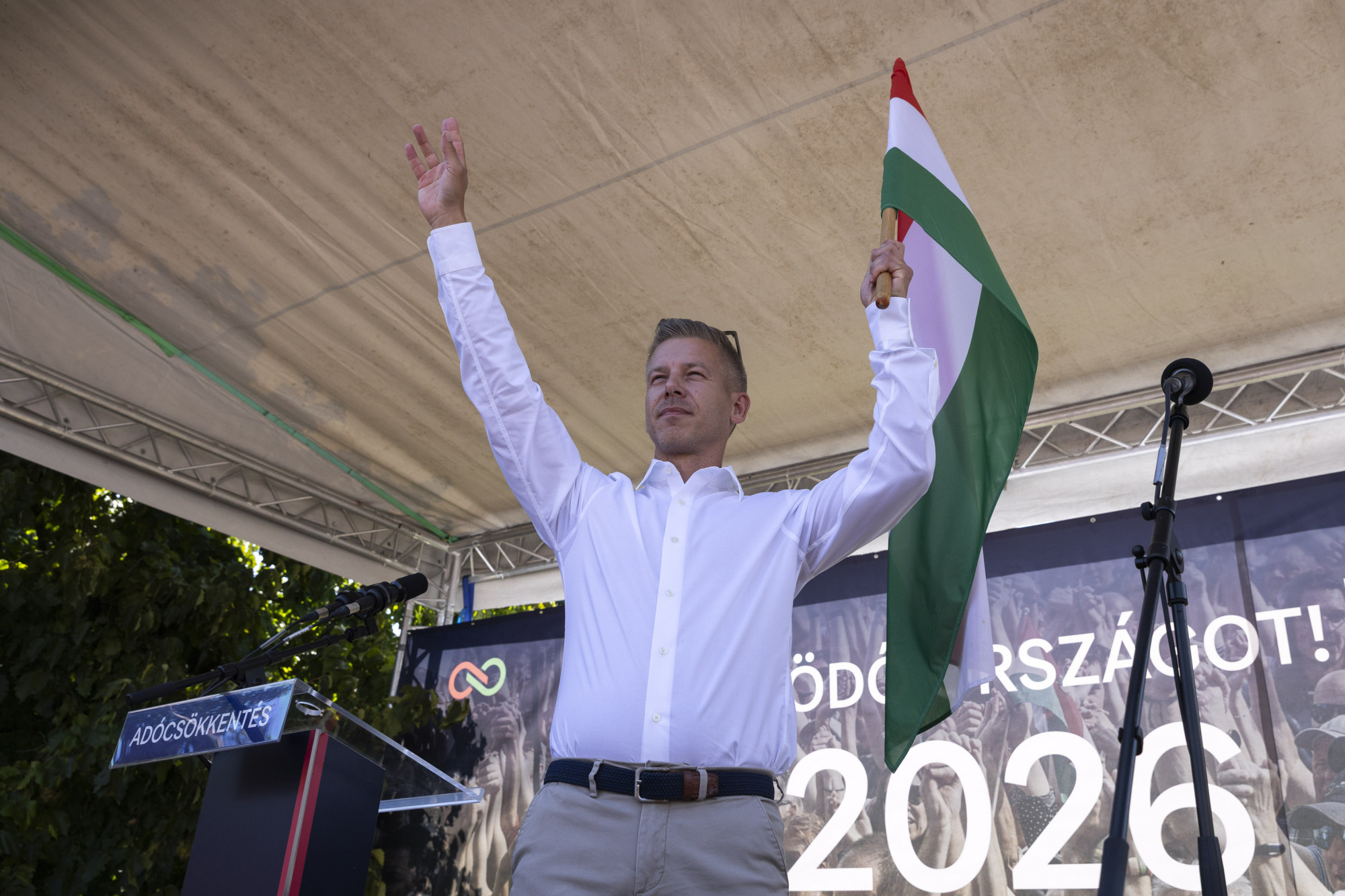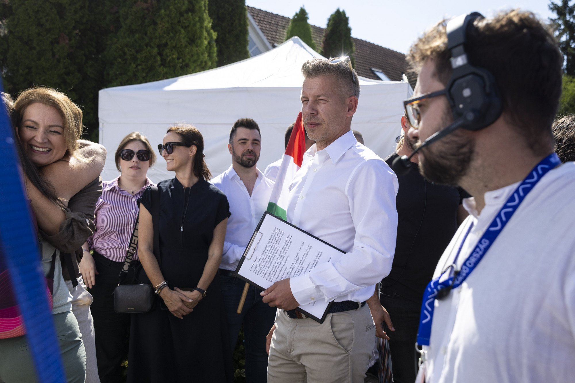 Magyar Péter megérkezett a színpadhoz, bemutatták a párt harmadik alelnökét