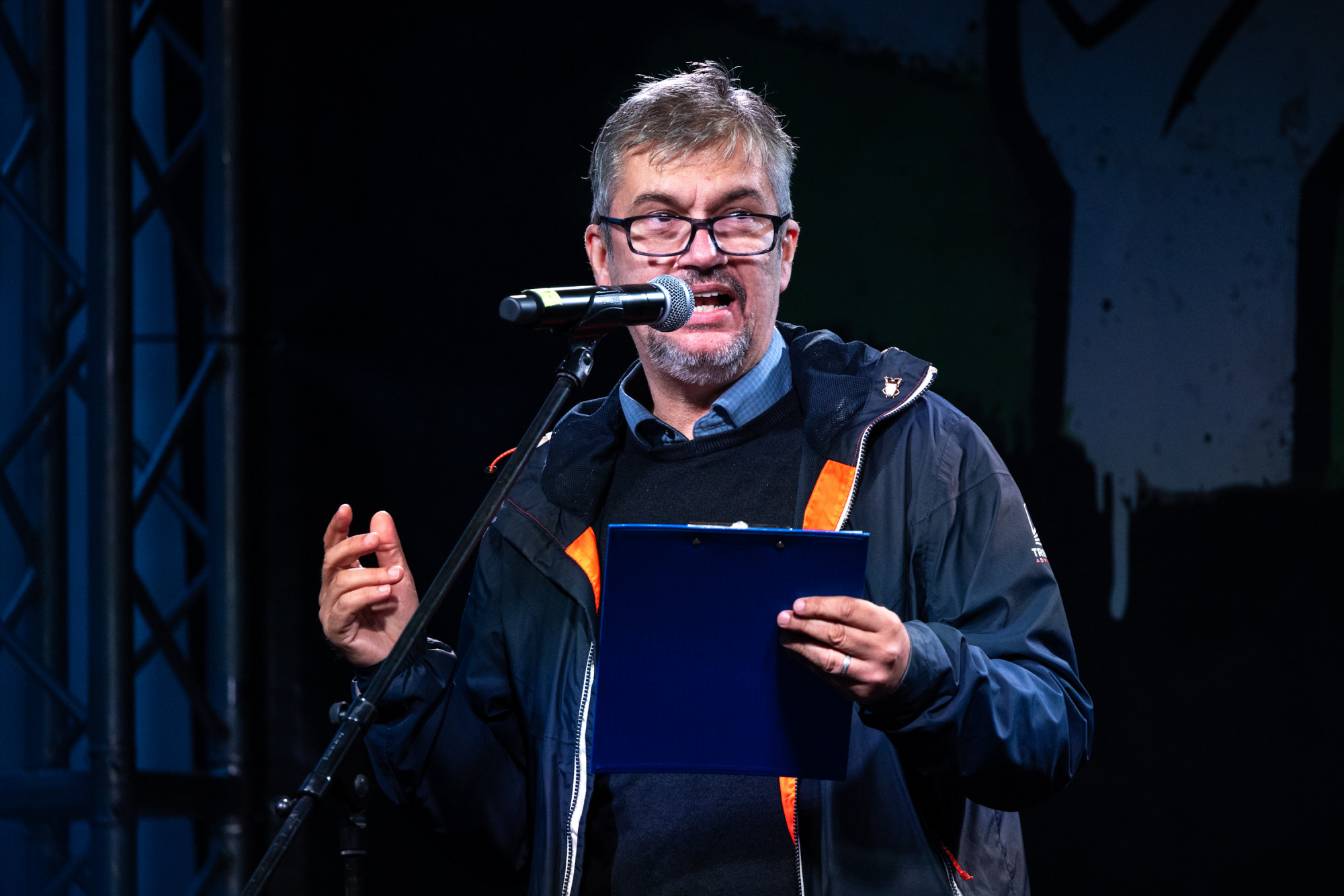 Az Együtt volt politikusa, az est utolsó hivatalos felszólalója azt mondta, nem fél, és bízik benne, hogy a tüntetők sem félnek. Szerinte azokat kell megvédeni, akik kiállnának, hogy elmondják a saját ügyüket, akik „hajlandóak még így is, a hatalommal szemben fellépni. Én értük vagyok itt.” Szeretné a megjelentek szolidaritását feléjük irányítani. A nemtelen lejáratásokról beszél, amelyek azokat érik, akik kiállnak a hatalom ellen.