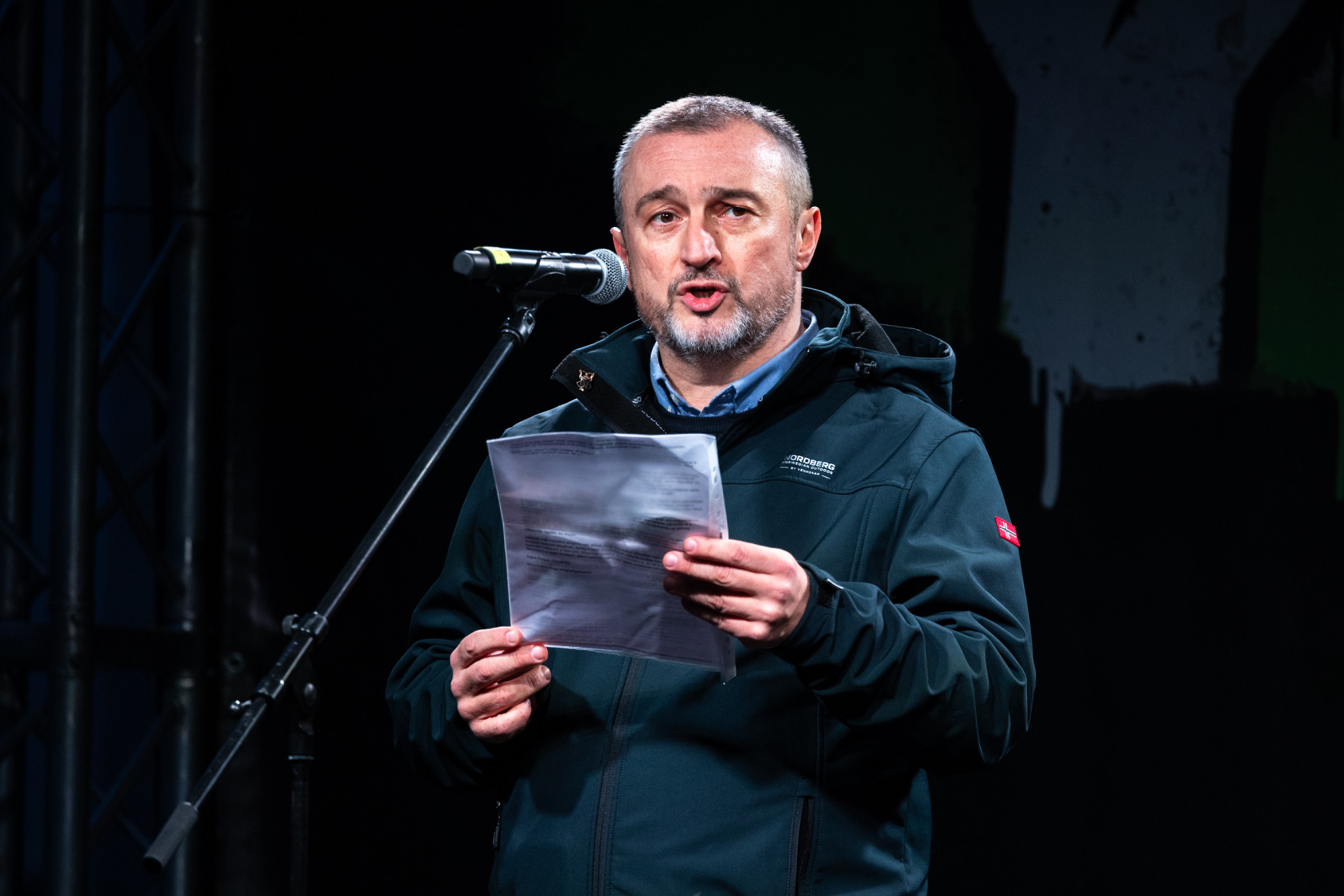 Tóth Jakab műsorvezető, aki korábban azt kérte, hogy maradjanak fent a fények az áldozatokért, arra kéri a tömeget, hogy ne rontsák el a pillanatot a skandálással.