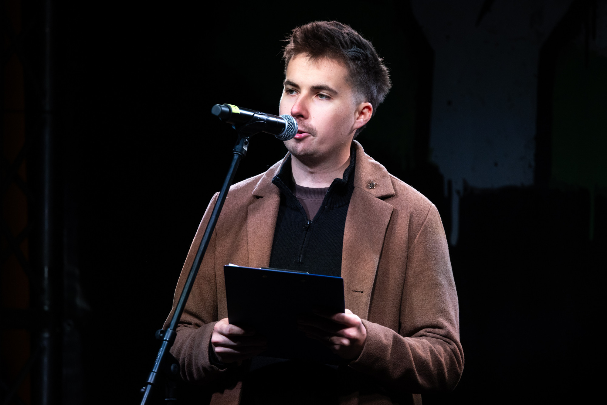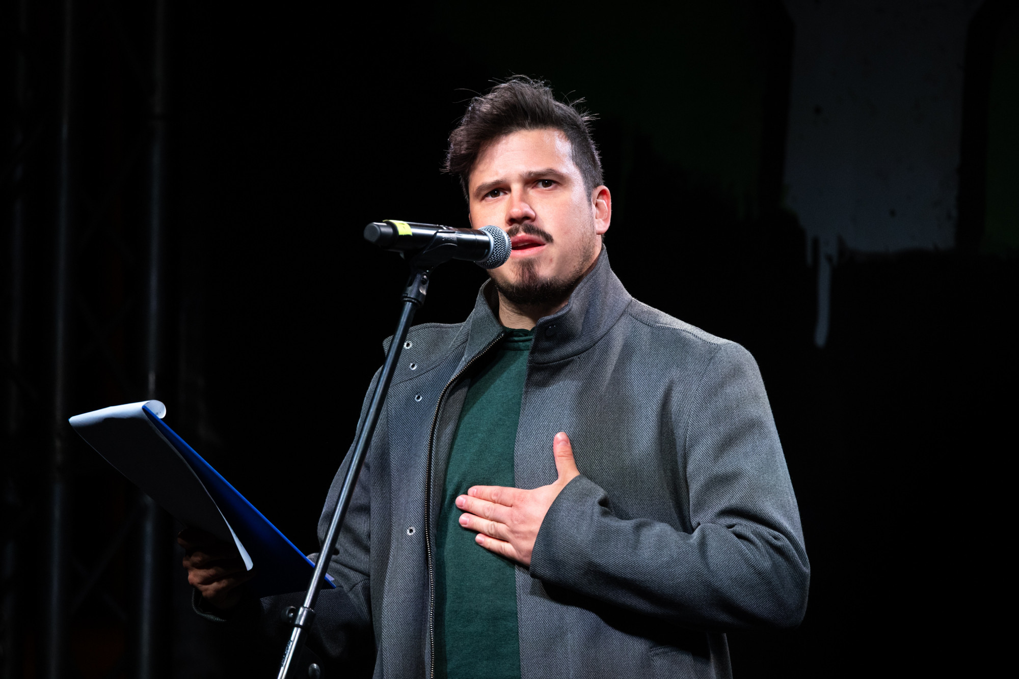Láng Balázs a külföldi civilek a változásért megmozdulás képviseletében lépett a színpadra. Az újságíró azt mondta, Budapestre visszatérve épp a megbékélésről gondolkodott a villamoson, amikor egy bácsi Magyar Péterről azt mondta, az idejében „az ilyen hazaárulóknak statárium járt, meg golyó”.