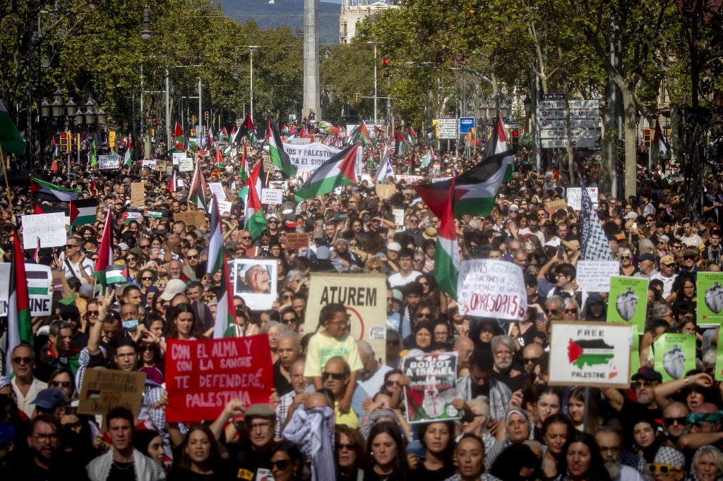 A hétvégén több tízezren vettek részt megmozdulásokon Barcelonában, Madridban és számos más spanyol városban, valamint Rómában és Lisszabonban is, miután az izraeli haditengerészet feltartóztatta a segélyflottilla hajóit. A szombati tiltakozás során már délelőtt megtelt Barcelona fő sugárútja, a Passeig de Gràcia, a tömeg pedig palesztin zászlókkal vonult fel. Családok, fiatalok és idősek együtt vettek részt a demonstráción – írja az AP. A kézzel készített táblákon pedig olyan feliratok voltak olvashatók, mint például, hogy „Gáza fáj nekem”, „Állítsátok meg a népirtást!” és „El a kezekkel a flottilláról!”