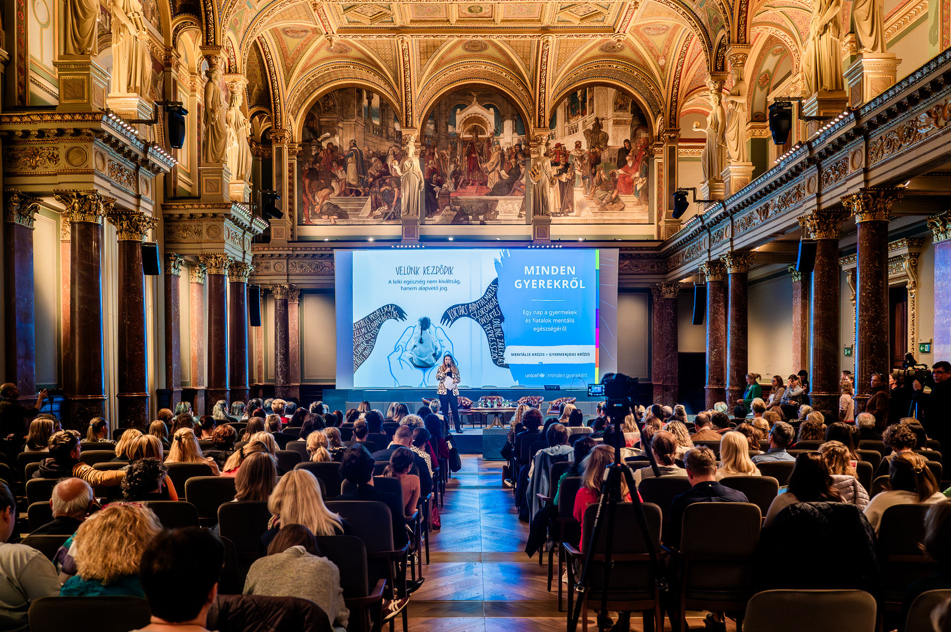 A gyerekek és kamaszok mentális egészsége súlyos, rendszerszintű válságban van - erről beszélgettek szakértők az UNICEF Magyarország által szervezett egésznapos, nagyszabású konferencián, amelynek a Magyar Tudományos Akadémia székháza adott otthont hétfőn. Már maga a helyszín is jelzi, hogy ez nem „mellékes” ügy: a gyerekek lelki jólléte olyan alapvető társadalmi kérdés, amelynek megoldása összefogást igényel.