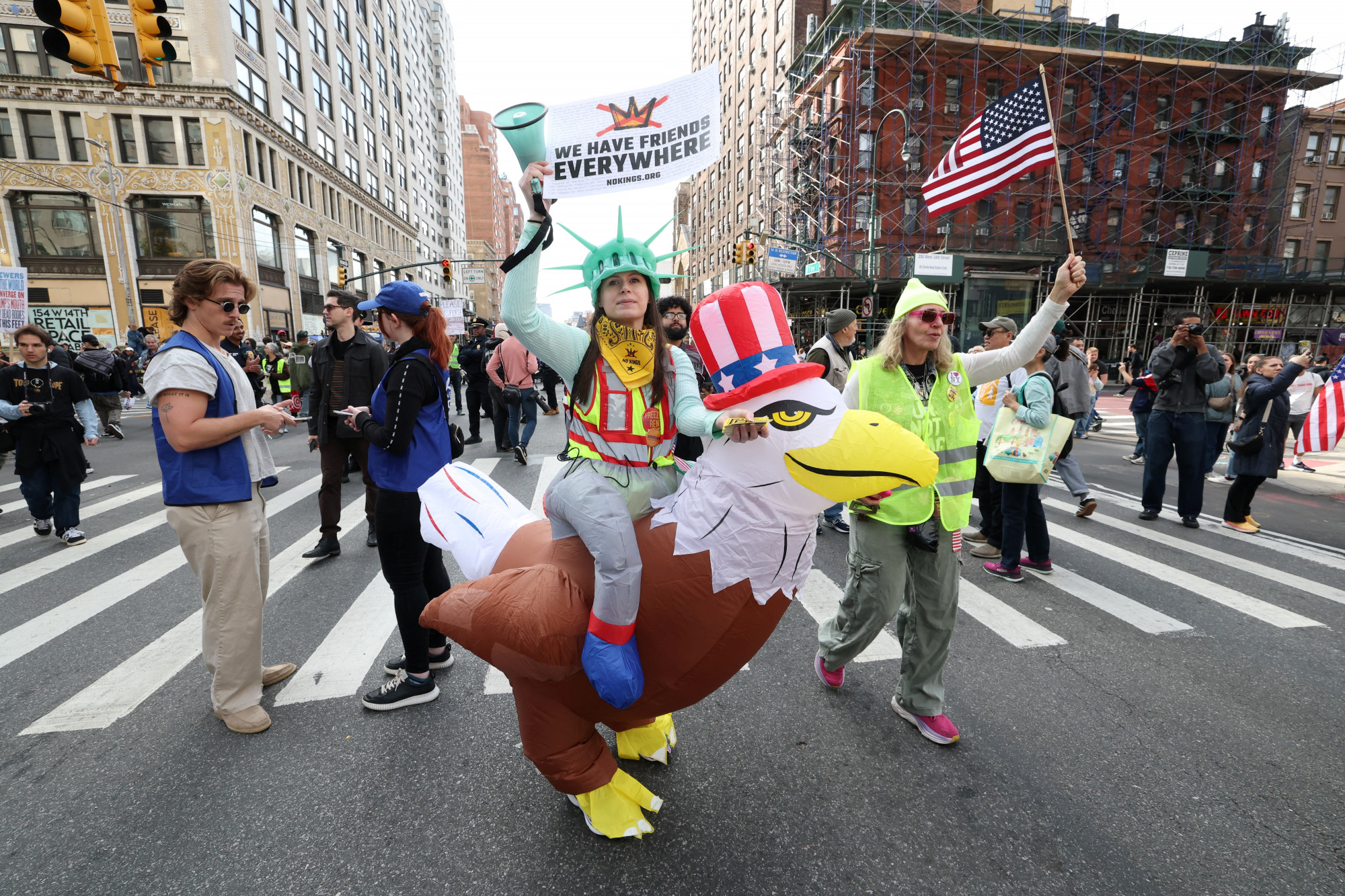 Ahhoz képest, hogy mekkora tömeg volt kint Amerika utcáin, a tüntetések meglepően békések maradtak. A New York-i rendőrség szerint a legnagyobb amerikai város különböző pontjain összesen több mint 100 ezer ember demonstrált, de egyetlen egyet sem kellett közülük letartóztatni. A hangulat minden beszámoló szerint inkább békés volt, mint harcos, és a leginkább utcai fesztiválokra hasonlító rendezvényeken mintha csak a legszellemesebb jelmeznek és transzparensnek járó címért versengtek volna egymással a felvonulók.