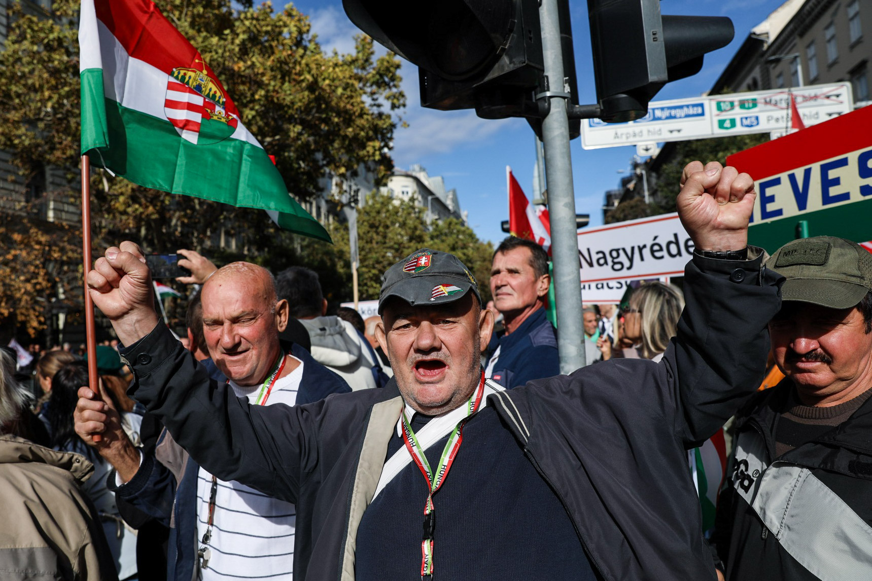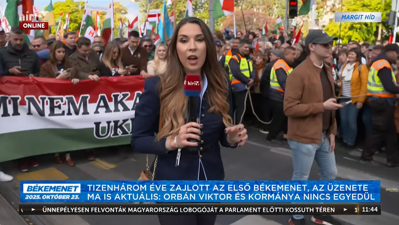 Kollégáink szerint viszonylag csöndben vonulnak a résztvevők a Békemeneten, némi szórványos Hajrá magyarok/Hajrá Viktor mellett páran elénekelték a Kossuth nótát, de ezt leszámítva célirányosan halad a menet a Kossuth tér felé, az eleje most érkezett meg a színpad elé.