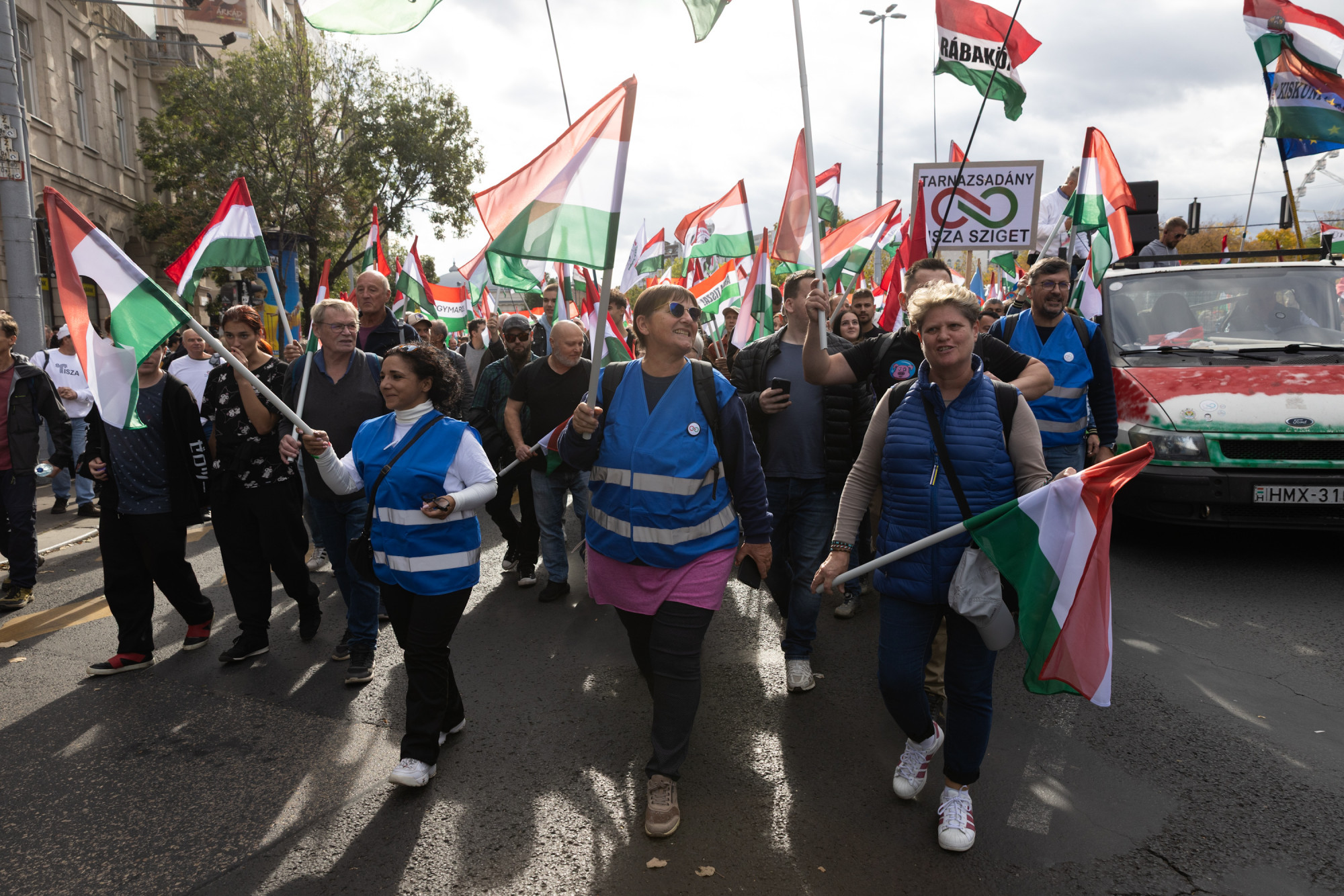 A menetet felvezető platós kocsi már felállt az Andrássy út elején, Bábel Vilmos kollégánk azt írta: egyelőre prominens tiszás politikusokkal nem találkozott.