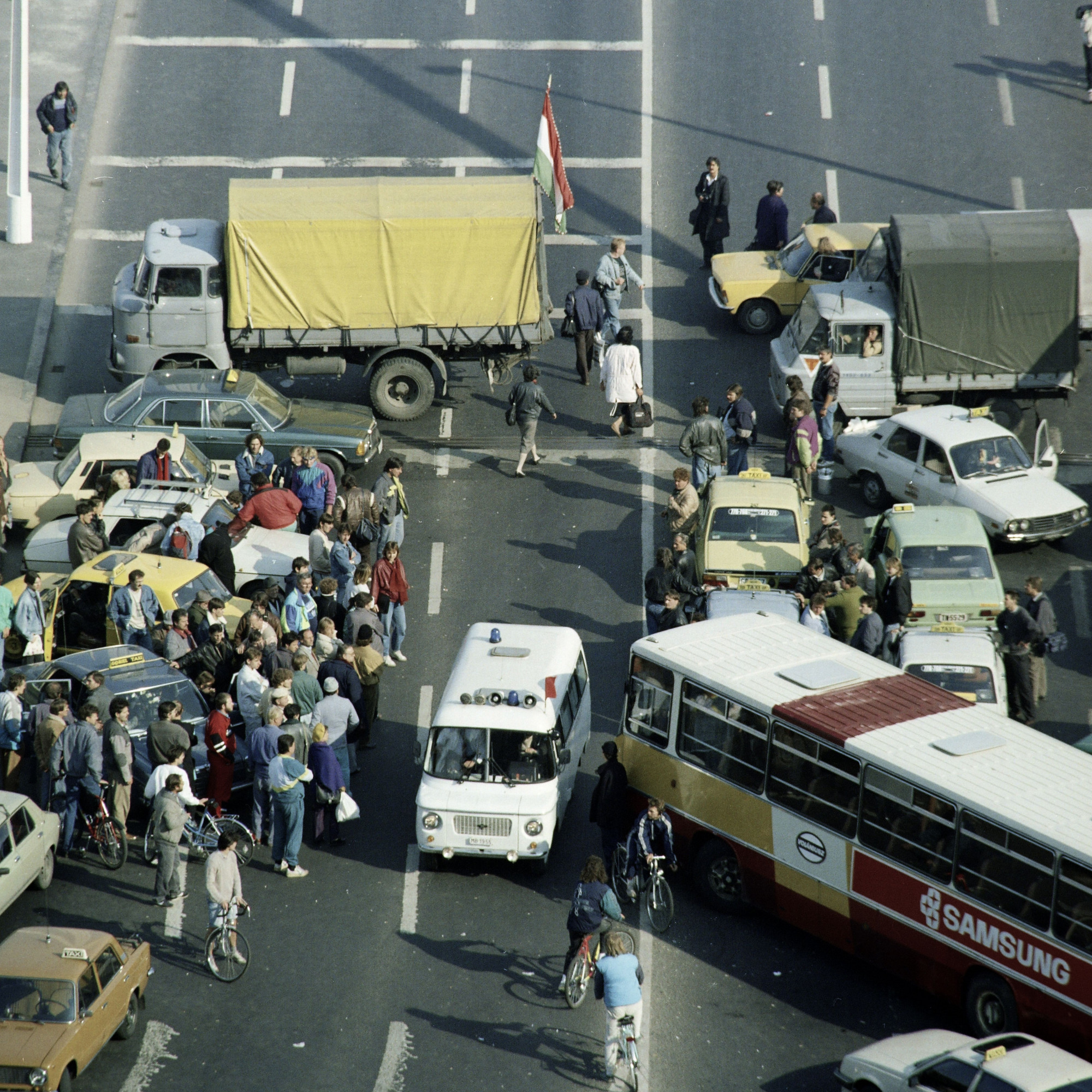 A köztársaság kikiáltásának első évfordulóján a taxisok úgy gondolták, nekik tetszene forradalmat csinálni – csak már nem Kádárék, hanem az árak és az új rendszer ellen. A 35 évvel ezelőtti, 1990. október 25. és 28. között az országot megbénító „taxisblokád” az egyik legerőteljesebb rendszerváltáshoz kapcsolódó élménye sokaknak.