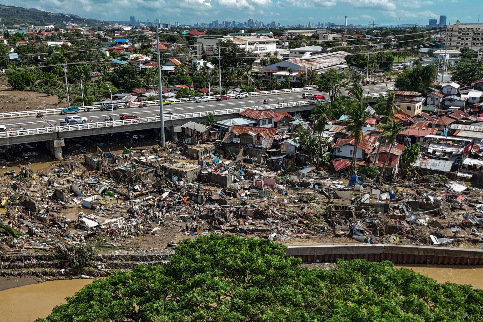 A tájfun a keddi szárazföldi érkezés óta gyengült, de továbbra is több mint 130 km/h sebességű széllel fúj. A segélyszállítmányozók arra várnak, hogy az ég kitisztuljon, de a legnagyobb kihívást az elsodort autók és törmelékek jelentik majd a mentési műveletek során.