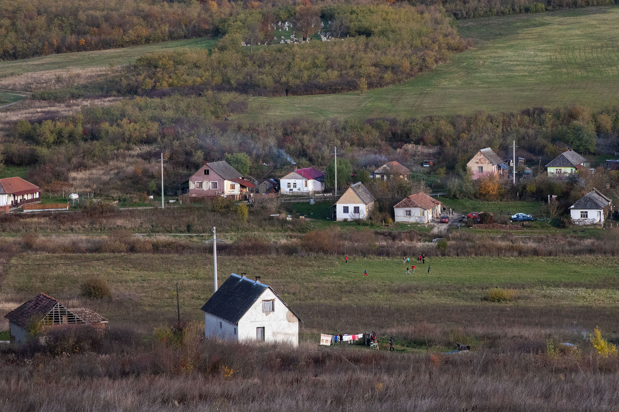 A dombtetőre érve megpillantottuk Csenyétét. A lassan lebukó nap arany színnel világította meg a színes házakat, a mezőn gyerekek fociztak, a kéményekből sűrű, szúrós szagú füst szállt az ég felé. A békés látványt elnézve nem gondoltuk, hogy pár perccel később már miattunk zeng majd a völgy.