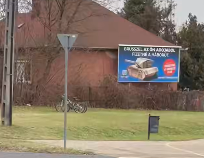 A pénzből hajtogatott tankot ábrázoló óriásplakátról van szó, amin az olvasható, hogy „Brüsszel az ön adójából fizetné a háborút”, és hogy „tiltakozzunk az adóemelés ellen”. A plakát amúgy a nemzeti konzultációt reklámozza, és Magyarország Kormánya megbízásából készült.