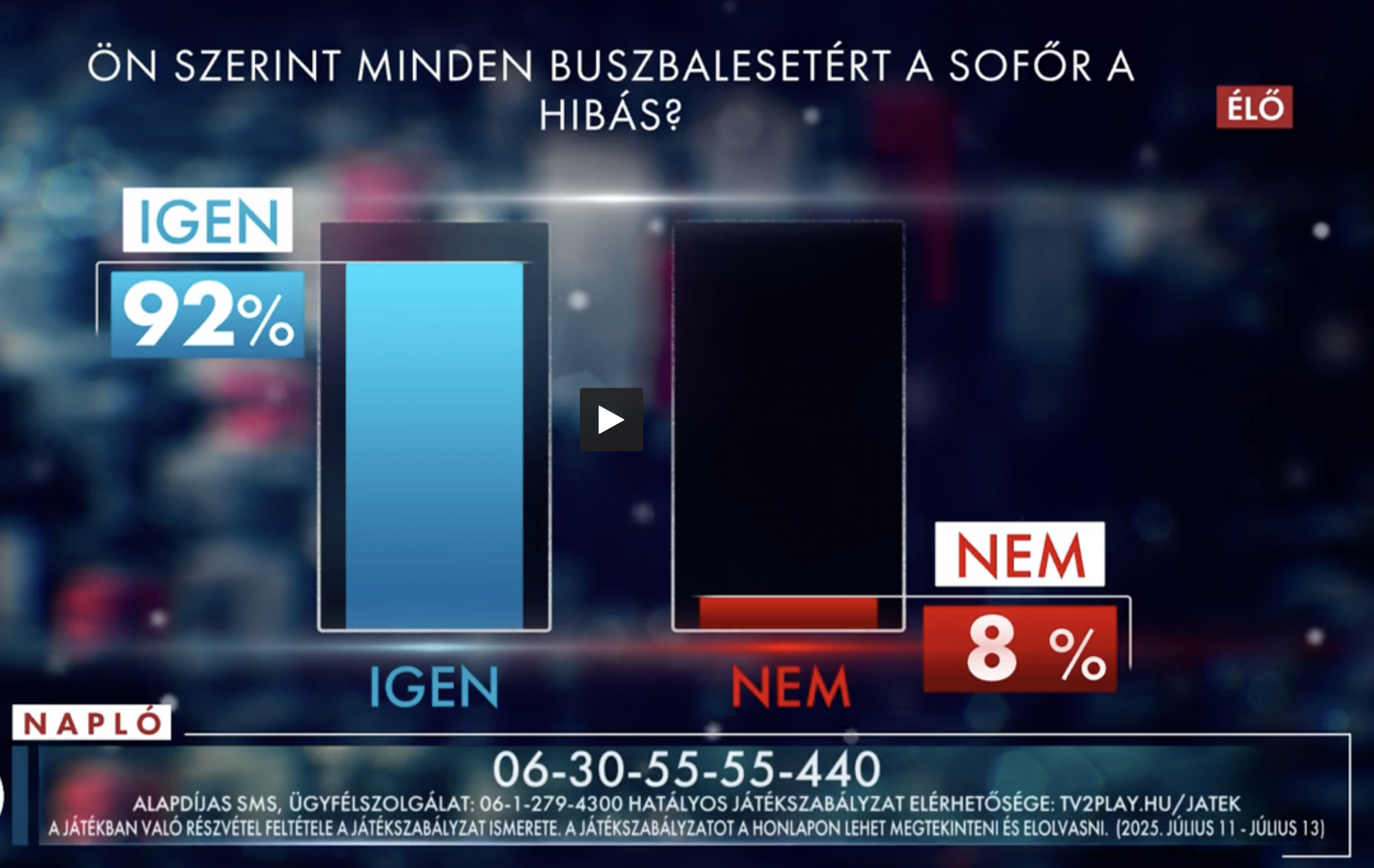 A közlemény szerint megsérthette az emberi méltóságot a TV2 a 2025. július 13-án 18 óra 47 perctől közreadott Naplóval és annak 2025. július 12-én 16 óra 19 perctől sugárzott műsorelőzetesével, melyekben halálos áldozatokkal járó busztragédiákat feldolgozó riporthoz kapcsolt szavazással egybekötött nyereményjátékot adtak közre.