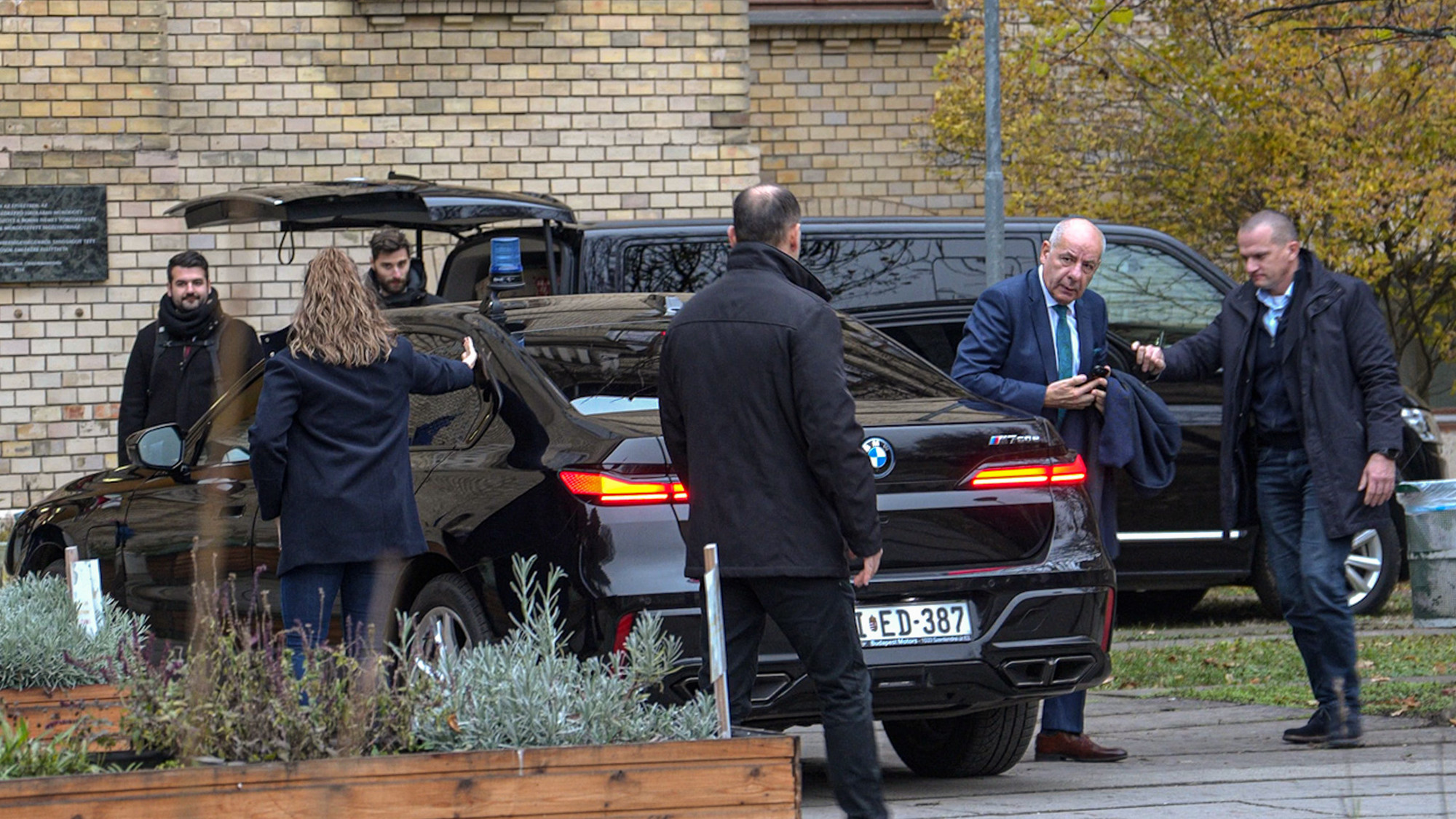 Odamentünk a helyszínre, hogy kérdéseket tegyünk fel az elnöknek, de erre esélyünk sem volt: Sulyok a szolgálati BMW-vel, TEK-esek által védve behajtott az intézmény udvarára, majd bement az épületbe.