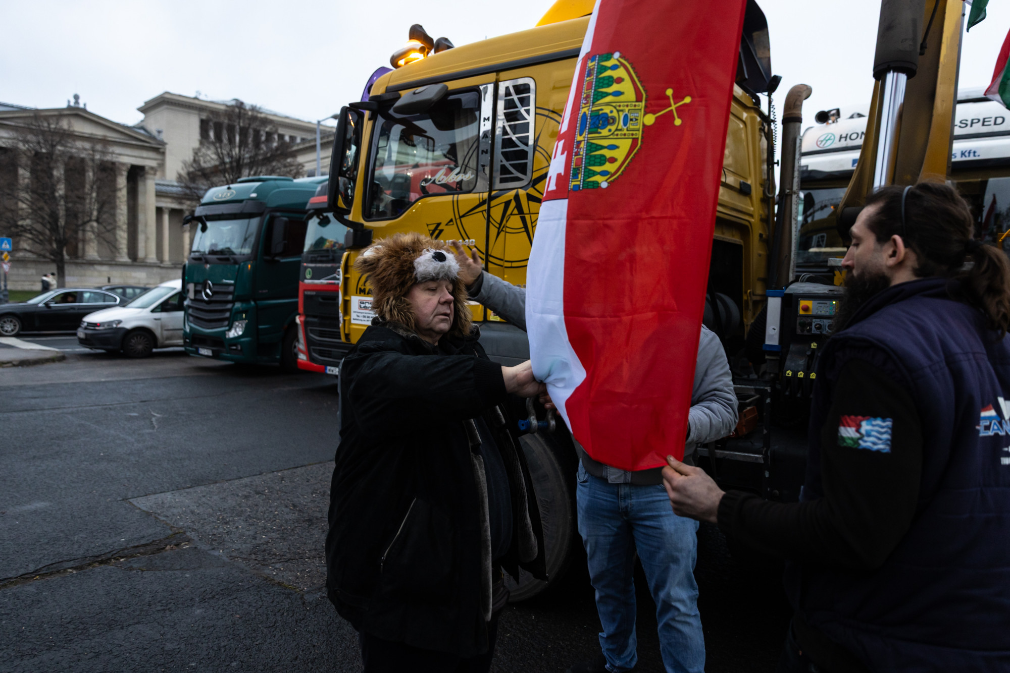 Dudálva tiltakozó kamionosok százai vonulnak át a fővároson, és a Róbert Károly körút, az Árpád híd és a Szentendrei út érintésével később vissza fognak hajtani az M0-s autóútra, de az eredetileg tervezett útvonal végére, a Hősök terére viszont csak ötven kamiont engedtek be a rendőrök – írja a Telex a megnövelt útdíjak és fuvardíjak ellen demonstráló konvojról.