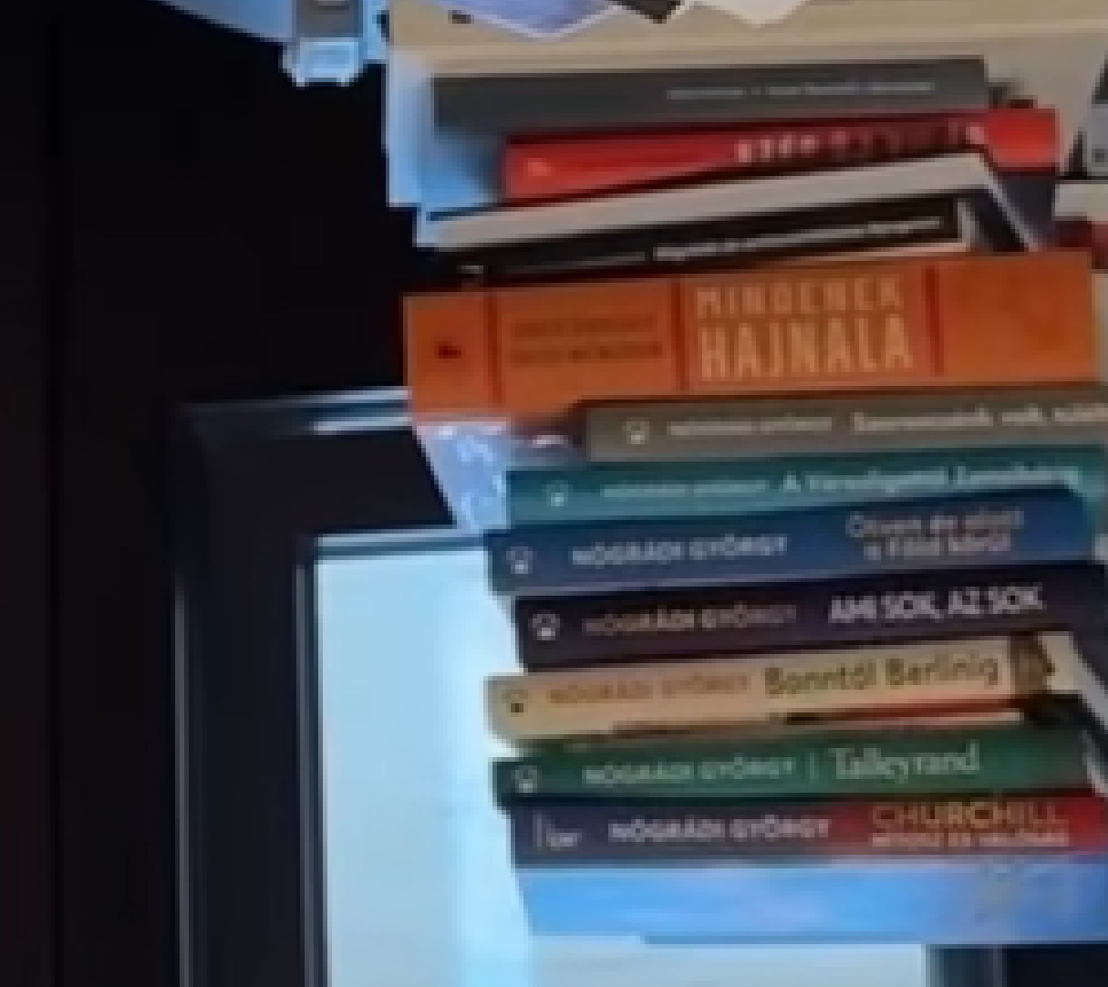 De ha közelebbről mégnézzük a kupacot, akkor kiderül, hogy a miniszterelnök érdeklődése eléggé egy irányba mutat. A legfelső 7 könyvnek ugyanis kivétel nélkül Nógrádi György a szerzője, akiről már évekkel ezelőtt kiderült, hogy tudományos tevékenységet nem végez, egy nem létező egyetemen rektorhelyettese.