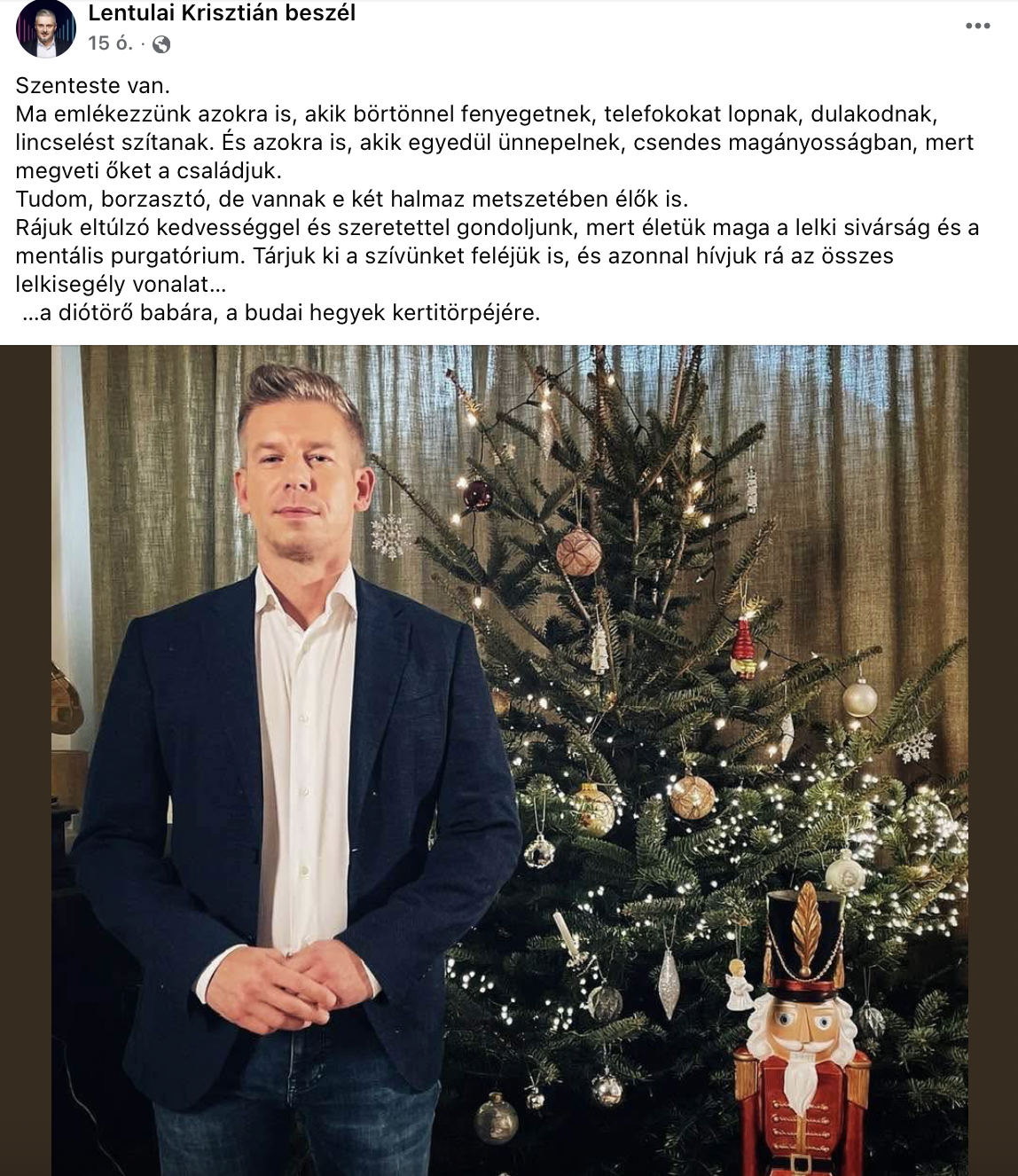 Kiváncsi vagy, hogy Lentulai Krisztiánt mi foglalkoztatja szenteste? Elárulja ő maga.