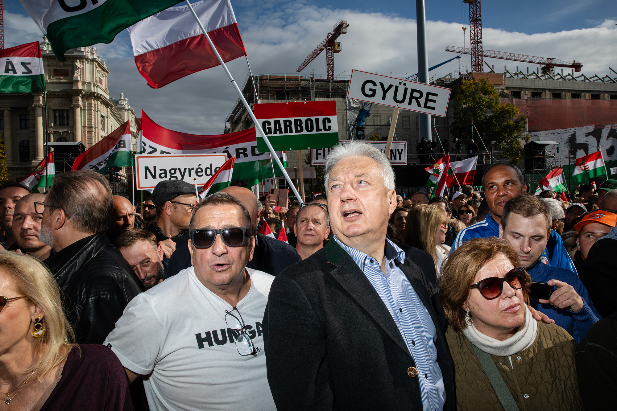 Határon túli magyarokkal, olaszokkal, lengyelekkel és németekkel vonultak a fideszesek a Békemeneten. A jászságiak Pócs János-feliratú sapkával érkeztek, a legnagyobb feltűnést azonban a rocksztárként fogadott Lázár János okozta.