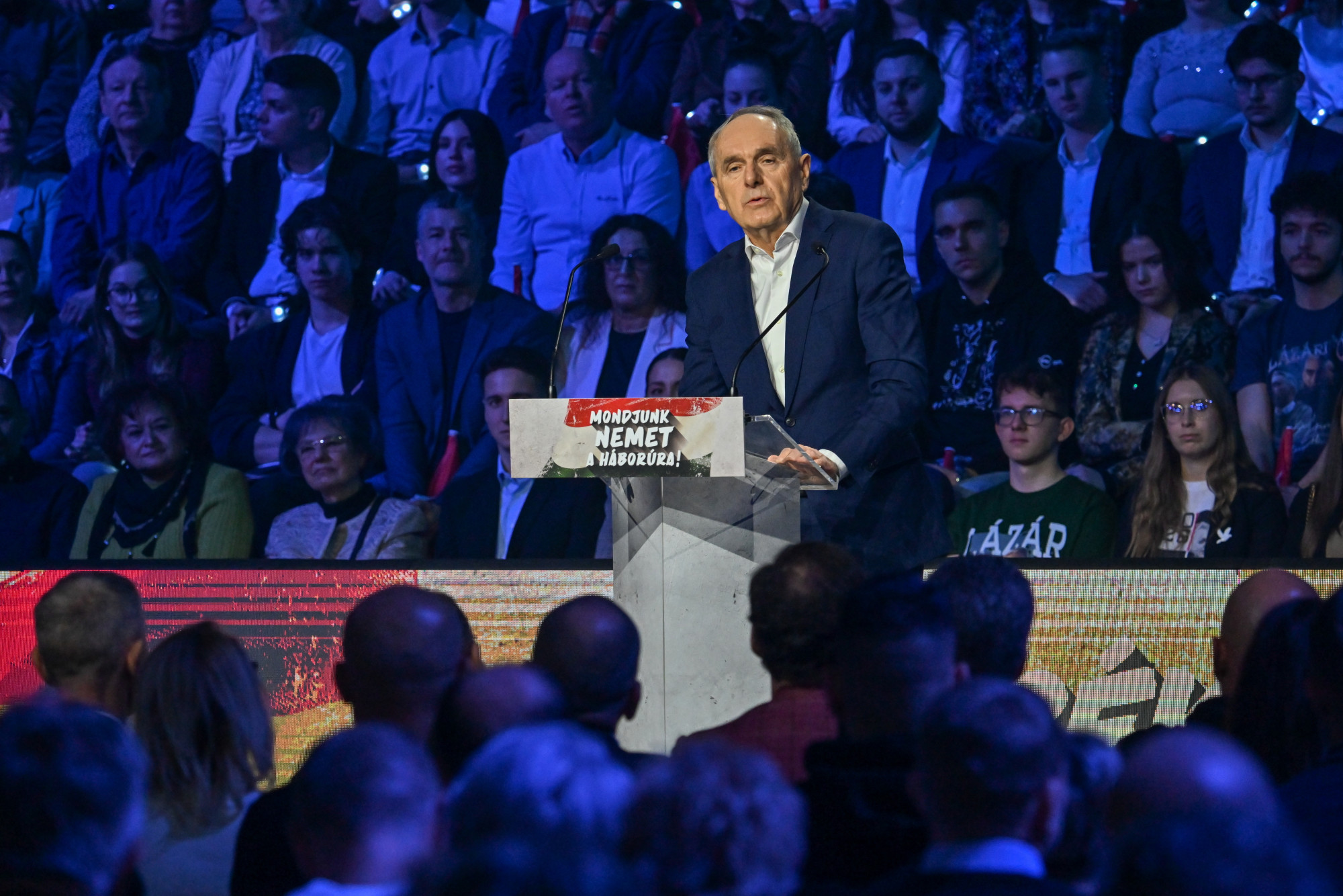 Szita rövid beszédében a baloldalt szidta, a jobboldalt dicsérte a tizenharmadik havi nyugdíj, eladósodás, energiaárak, munkanélküliség tengelyen. A választás kérdése: „háború lesz vagy béke”, „további fejlődés vagy megszorítás”. A Tisza nagyon sok rosszat csinálna, bezzeg a Fidesz! Aki nem hiszi, annak Szita javasolja, nézzen körül Európában, ahol a brüsszelpárti kormányok elveszik a pénzt a polgáraiktól.