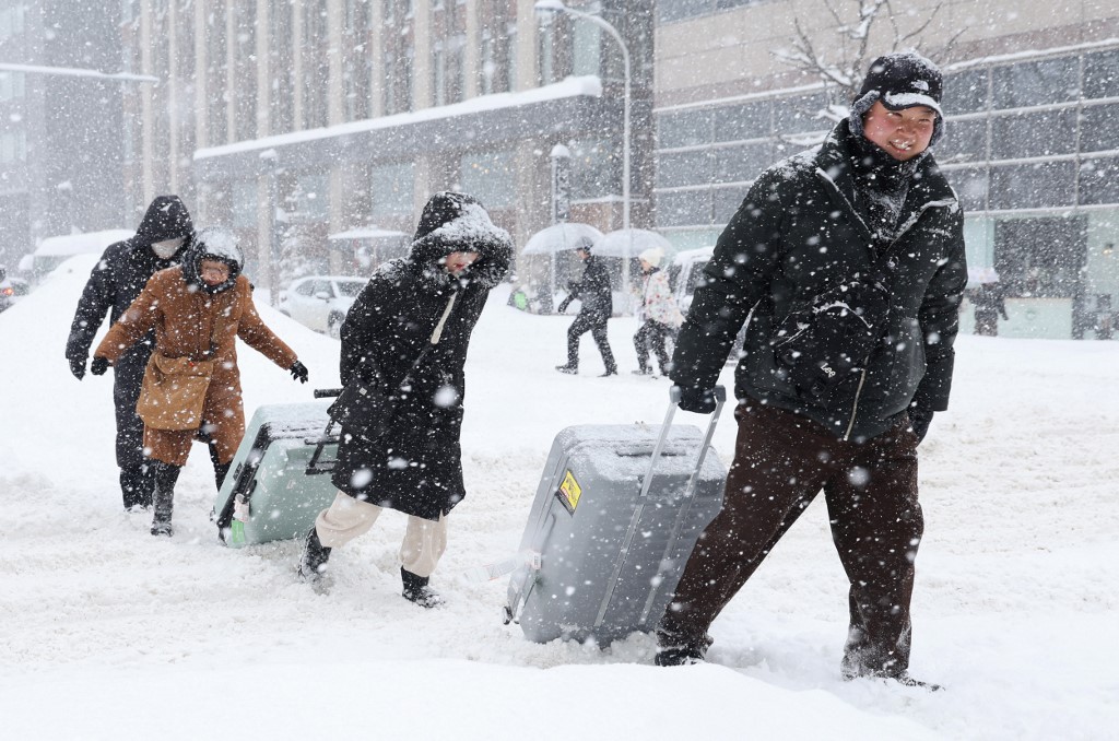 Az ítéletidő miatt több mint hétezer utas ragadt a vasárnapról hétfőre virradó éjszakán Hokkaido legnagyobb repülőterén, a Szapporo közelében lévő New Chitose Airporton. A térségben olyan erősen havazott, hogy nemcsak számos repülőjáratot kellett törölni, hanem a vonatközlekedés is leállt.