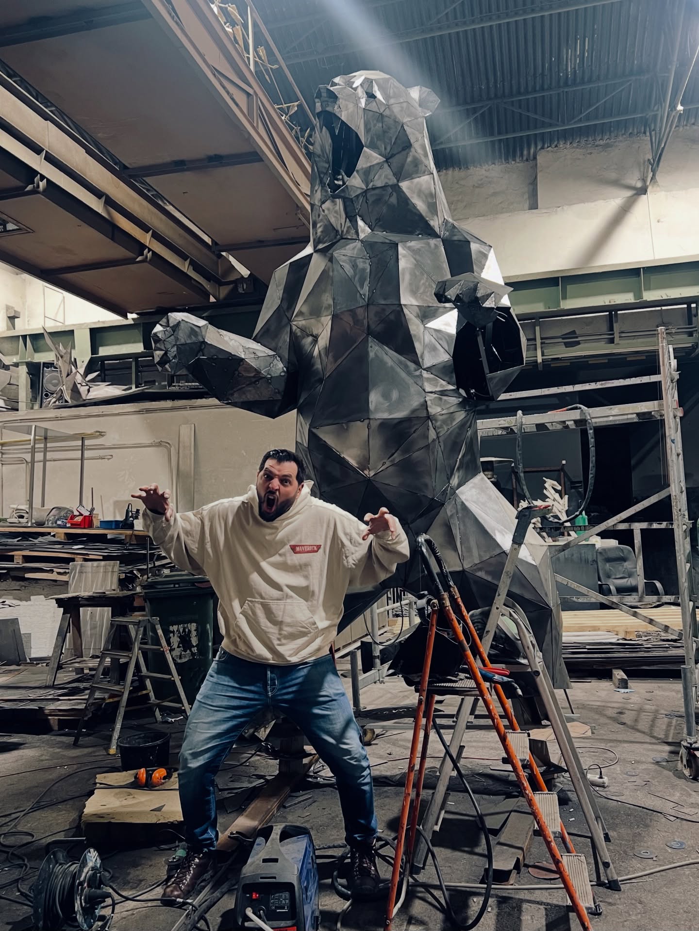 Az álló, mellső végtagjait kitáró medvét ábrázoló szobor 3,5 méter magas és több mint 2 méter széles. Időtálló corten acéllemezekből készült, amely ellenáll az időjárás viszontagságainak, belső szerkezete rozsdamentes acélból van kialakítva. A szobornak belső világítása is lesz, amelyet 40 méteres LED-csík biztosít, így „éjszaka is látványos lesz, amint a lemezek közötti réseken áttör a fény”.