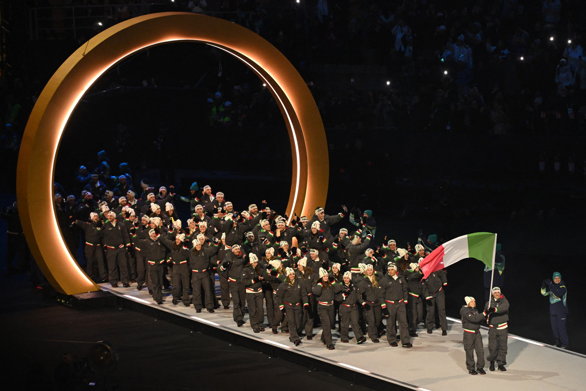A tévén keresztül is úgy tűnt, a Guardian beszámolója is megerősítette, hogy a leghangosabb üdvözlést az ukránok kapták a bevonuló csapatok közül, természetesen addig, amíg a házigazda olaszok megérkeztek a hagyományok szerint a legvégén. (Ukrajna megtámadása miatt ezen az olimpián sem versenyezhetnek sportolók orosz zászló alatt, így a kvótát szerzett 13 orosz versenyző egyéni semleges sportolóként vesz részt a versenyen – ugyanez a státusz hét fehérorosz sportolóra is vonatkozik.)
